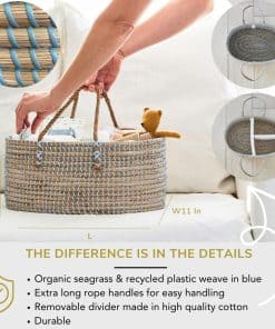 1. ¡Recién llegado! Nuevo organizador de pañales para bebés de Bebé BASK para mamás que buscan estilo y conveniencia en un hermoso paquete. 2. GALARDONADO PREMIADO – «Lily» de Bebé BASK ha recibido reconocimiento de prestigiosos premios por su excepcional diseño y funcionalidad. Descrito como una obra maestra sostenible que combina con elegancia la elegancia y la practicidad. Descubre por qué se ha convertido en el favorito definitivo. 3. ABRACE LA SOSTENIBILIDAD Y EL ESTILO – elaborado con junco orgánico y tejido de plástico reciclado, este elegante y práctico organizador de pañales mide 16x11x7 pulgadas. Sus exclusivas asas de cuerda de 7 pulgadas facilitan llevar el organizador de pañales azul claro de una habitación a otra. 4. ÚSELO EN EL HOGAR COMO UNA CANASTA MULTIUSOS – Este organizador de pañales de estilo mimbre para bebés no solo es un organizador de pañales ideal, sino también una elección sostenible para pasar a las futuras generaciones. Al quitar el suave separador de algodón, se transforma sin esfuerzo en una linda canasta de juguetes, una canasta de picnic, un organizador de limpieza o una versátil canasta multiusos para todas sus necesidades en el hogar. 5. CANASTA DE BABY SHOWER ÚNICA – Este actual y portátil caddy de almacenamiento de pañales viene en un clásico color blanco, para niñas, un encantador rosa palo, y para niños, un encantador azul dove. Ya sea que lo regale tal cual o lo llene con artículos esenciales, seguramente será el éxito definitivo en cualquier baby shower. ¡Obtén el tuyo ahora y lleva alegría a los nuevos padres con este regalo imprescindible para bebés! 6. DESCUBRE EL COMPLEMENTO PERFECTO – ¡Completa tu moderna guardería boho con la cesta para cambiar bebés a juego de Bebé BASK! Junto con este organizador de pañales de almacenamiento, nuestra cesta de cambio de bebé bellamente diseñada complementa perfectamente cualquier cambio de bebé. 7. 100% HECHO A MANO POR MAMÁS PARA MAMÁS: Hábiles mamás artesanas elaboran cada pieza con amor en la comodidad de sus hogares, utilizando técnicas tradicionales transmitidas de generación en generación. Al elegir BEBÉ BASK, estás apoyando a las mamás artesanas locales de Vietnam y a sus familias, creando un ingreso sostenible y preservando el fino arte de la artesanía.