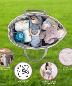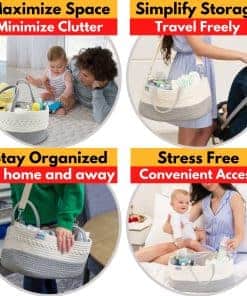 Pequeño y versátil, este organizador de almacenamiento para bebés es lo suficientemente compacto como para caber en una estantería de almacenamiento de mesa de cambio o en tu auto, lo que te permite llevar tus esenciales para bebés a donde tú y tu bebé viajen, ya sea en casa o fuera de ella. Su diseño portátil y liviano facilita la operación con una sola mano, con una correa para el hombro ajustable adicional y asas ergonómicas.