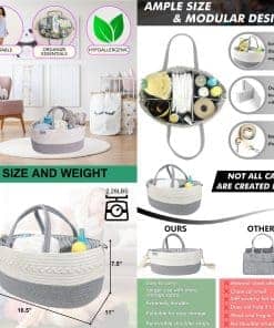 Con compartimentos extra, bolsillos para biberones y un diseño de cesta de pañales grande, este organizador de pañales te permite almacenar sin esfuerzo más esenciales para bebés para un acceso rápido bajo demanda. Además, los separadores extraíbles te permiten personalizar tu organizador de bebé como desees, brindándote mucho espacio adicional para tus necesidades diarias de bebé.