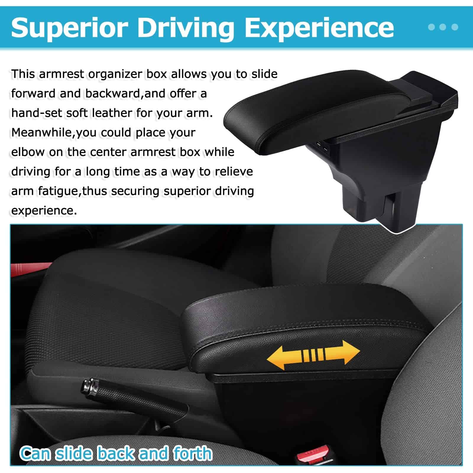 Organizador de Reposabrazos Doble Capa 3 Puertos USB para