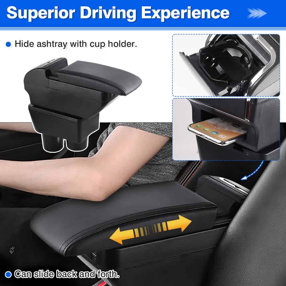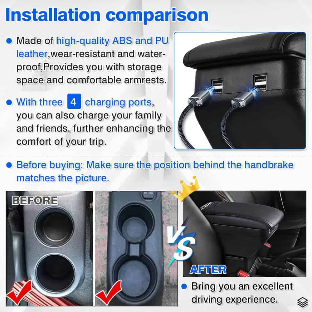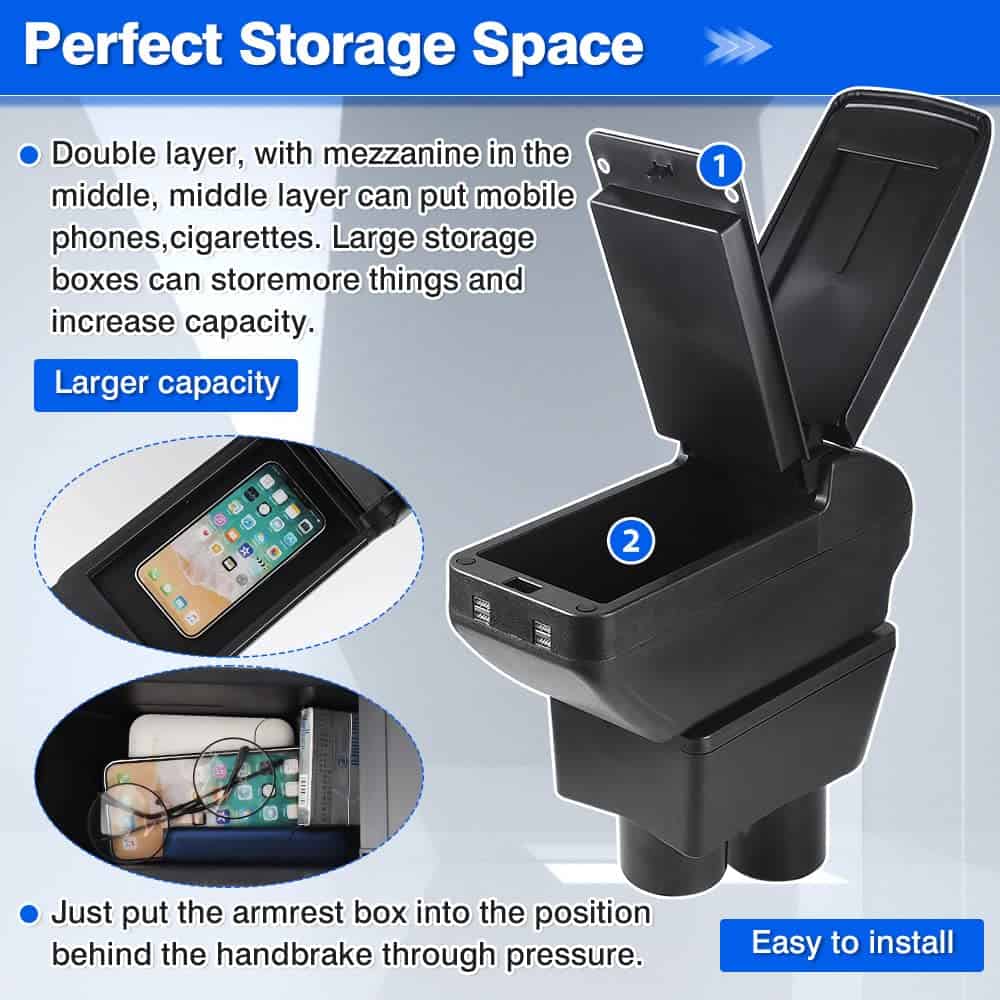 Organiza tu espacio de almacenamiento en el automóvil con este organizador de reposabrazos doble capa diseñado para adaptarse perfectamente a tu Nissan Almera Versa. Hecho de materiales premium como ABS y cuero PU, este organizador es respetuoso con el medio ambiente, resistente al desgaste e impermeable. Además, ofrece una experiencia de conducción superior con su suave acolchado de cuero para tu brazo. Con 4 puertos USB para cargar varios teléfonos al mismo tiempo y una doble capa de espacio de almacenamiento para guardar tus artículos personales de valor de forma segura. La instalación es sencilla, solo coloca el organizador de reposabrazos en la posición detrás del freno de mano a través de presión, sin necesidad de herramientas y sin ruidos molestos.