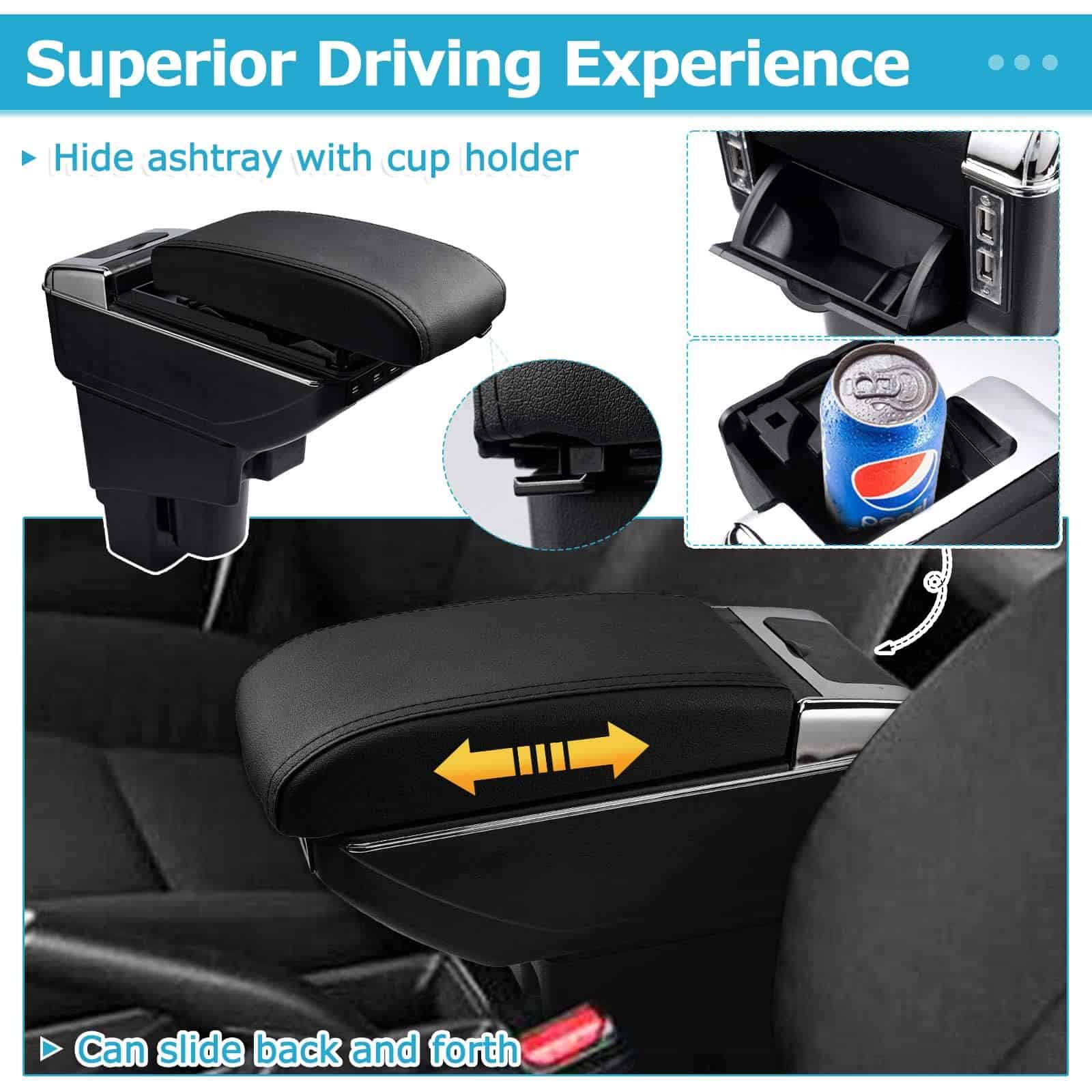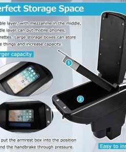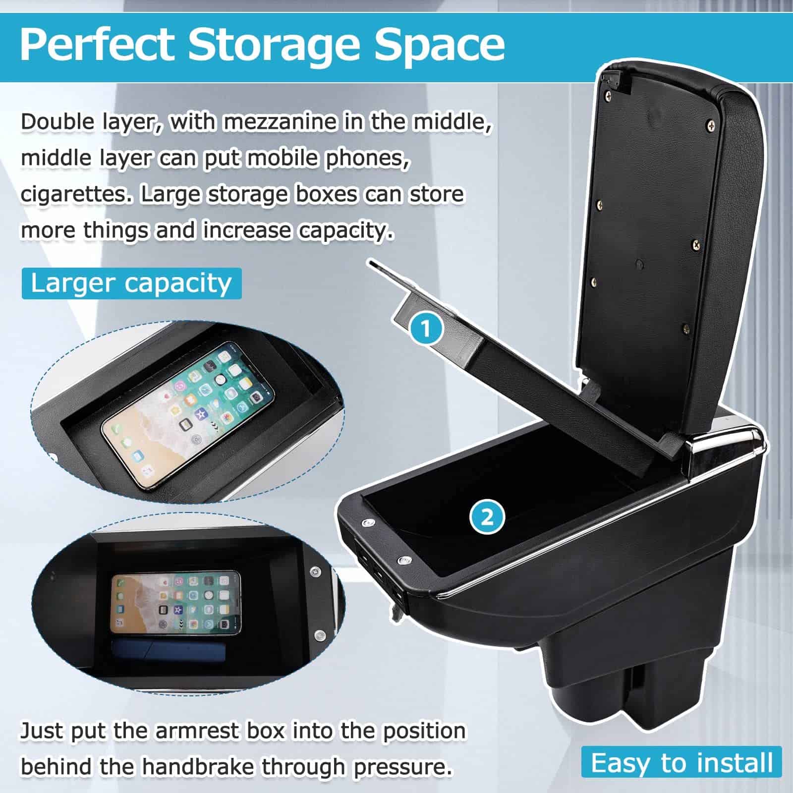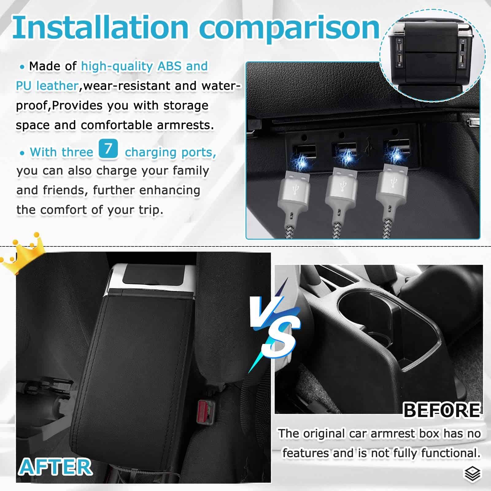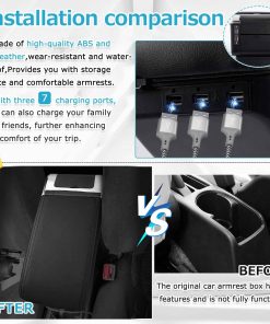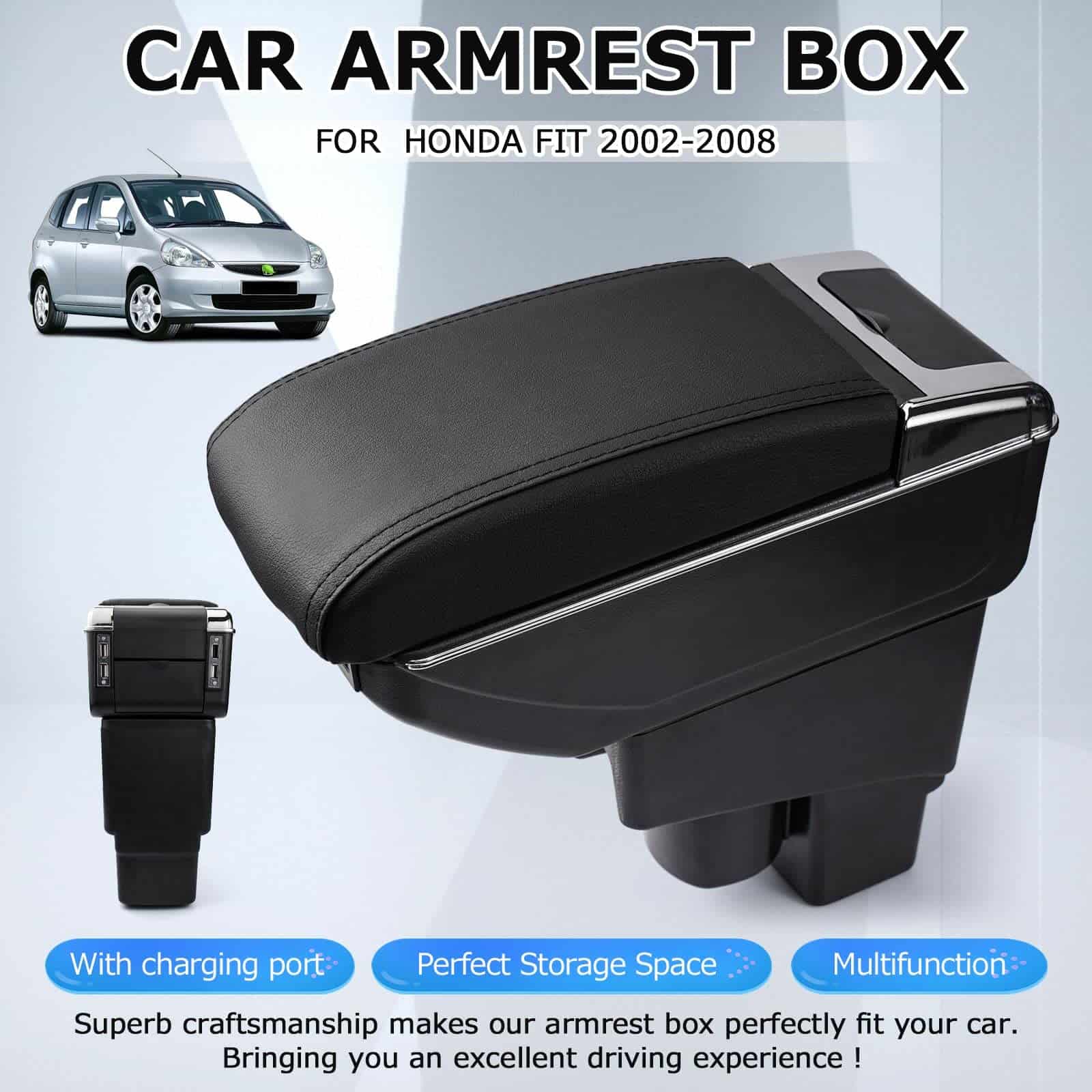 Organizador de reposabrazos personalizado Flymotor, diseñado específicamente para el Honda Fit Jazz Hatchback 2002-2008 (No apto para el modelo Sedan). Este organizador de reposabrazos doble capa cuenta con 7 puertos USB para una conveniente carga de tus dispositivos móviles mientras viajas. Fabricado con materiales de alta calidad como ABS y cuero PU, esta caja de almacenamiento es resistente al desgaste, impermeable y duradera. Ajusta perfectamente en la consola central de tu auto, permitiéndote deslizarla hacia adelante o hacia atrás para un ajuste cómodo. Además, el diseño de la tapa suave de cuero ofrece un apoyo confortable para tu brazo mientras conduces. Con 3 puertos de carga USB, podrás mantener tus dispositivos cargados en todo momento. El diseño de doble capa ofrece un amplio espacio de almacenamiento para guardar tus pertenencias personales de manera segura. Instalación sencilla sin necesidad de herramientas, simplemente coloca la caja de reposabrazos en su lugar detrás del freno de mano y disfruta de una experiencia de conducción superior.