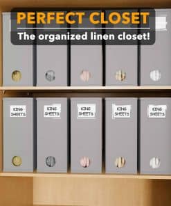 3. TARJETAS DE ETIQUETA INCLUIDAS – Con la etiqueta extraíble en el organizador de almacenamiento de sábanas, puedes identificar el contenido de la ropa de cama al instante, lo que te ahorrará mucho tiempo.