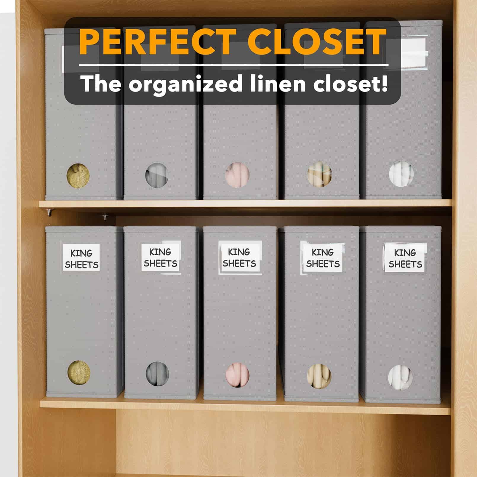 1. 10 ORGANIZADORES DE SÁBANAS – Haz que tu armario de ropa de cama esté organizado y hermoso con este organizador de tela de sábanas plegable; Cada Organizador de Almacenamiento TAMAÑO: 5″W x 15″D x 12.8″H.