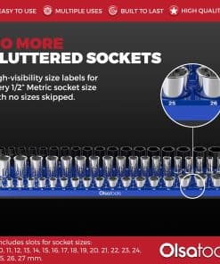 1. HAZ TU TRABAJO MENOS FRUSTRANTE EN MINUTOS – ¡Nuestro organizador de zócalos magnético ahorra la frustración de clasificar el caos de los zócalos sueltos! ¡El organizador puede almacenar hasta 54 de tus zócalos métricos de 1/2 pulgada. Las marcas de tamaño fáciles de leer facilitan la búsqueda del tamaño correcto del zócalo!.