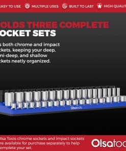4. FUNCIONA CON TODOS LOS ZÓCALOS – Si has estado buscando una bandeja organizadora de zócalos magnéticos que pueda contener TRES juegos de zócalos CROMO o de IMPACTO en profundo y poco profundo, entonces tu búsqueda ha terminado. ¡Incluye el rango de tamaños más popular para zócalos métricos de unidad de 1/2 pulgada de 10 mm a 27 mm sin omitir ningún tamaño!.