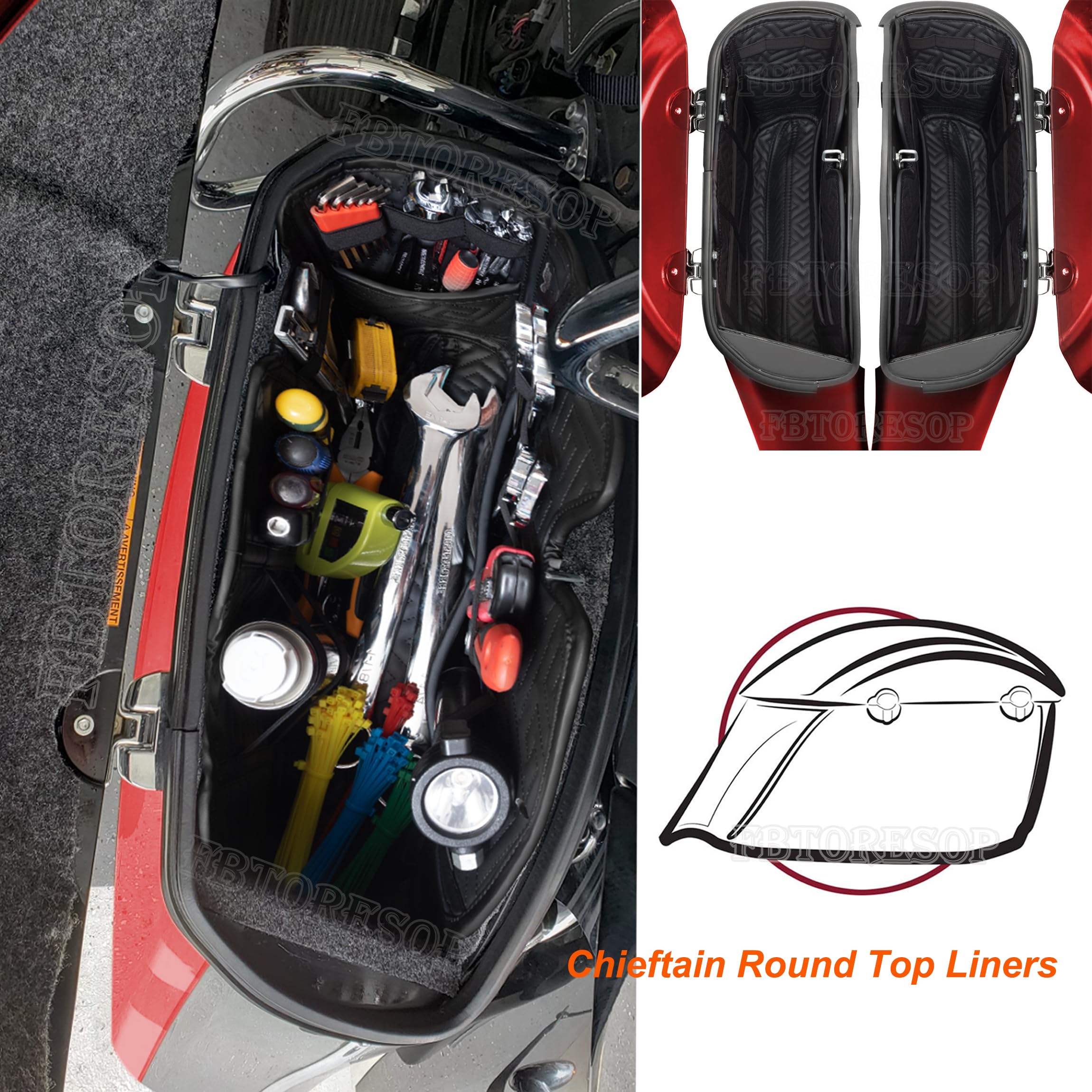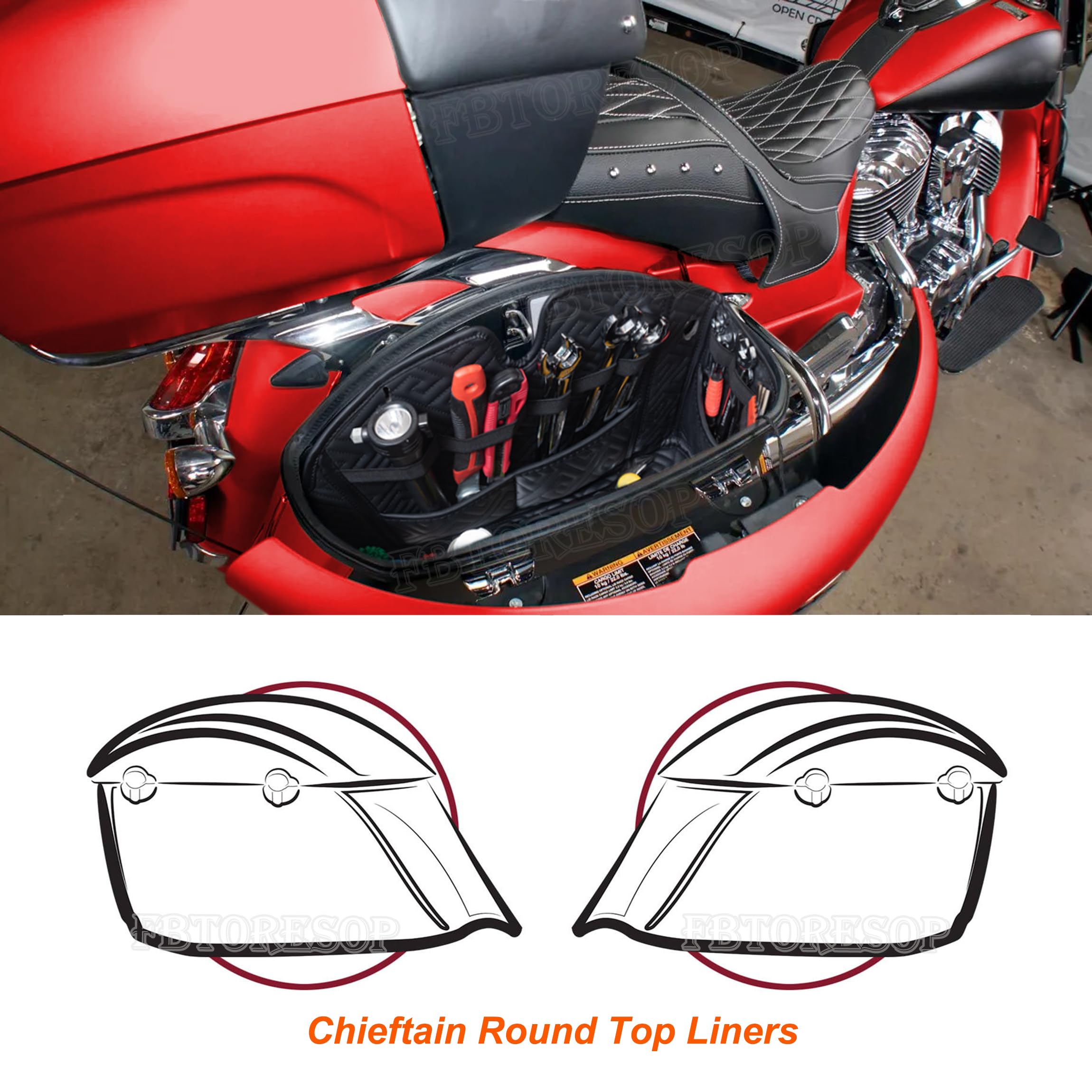 Fits Indian Saddlebag Round Top Double Hinge 2014 -later. Indian saddlebag liners came with more than enough velcro to stick to the hard round top double hinge Indian saddlebag. Fits Indian Chieftain 2014-2018 Indian Chieftain Limited 2017,2018 Indian Chieftain Elite 2017,2018 Indian Chieftain Classic 2018-2020. Fits Indian Roadmaster 2015-2022 Indian Roadmaster Elite 2018,2020 Indian Roadmaster Classic 2017,2018. Fits Indian Chieftain Dark Horse 2016-2018 Indian Springfield Dark Horse 2018,2019 Indian Springfield 2016-2022.