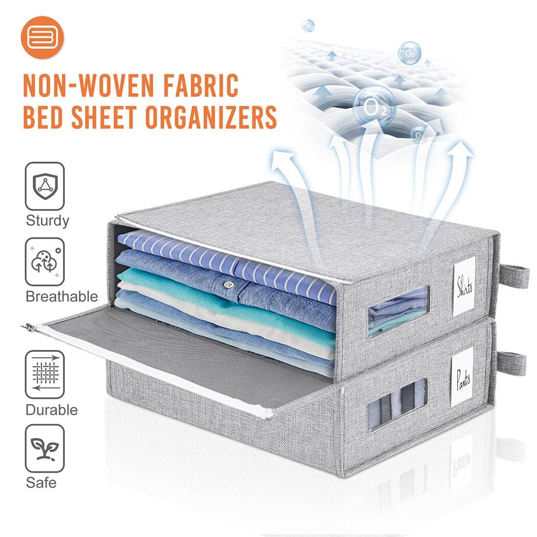 1. ORGANIZADOR DE SÁBANAS DE ALTA CALIDAD Nuestro organizador de armario está hecho de duradera tela no tejida de alta calidad, que es resistente y transpirable, y también evita que entre polvo, no solo te ayuda a mantener tus sábanas, fundas nórdicas y fundas de almohada organizadas y ahorran espacio, sino que también hacen que tu armario sea hermoso y adecuado para cualquier estilo de hogar.