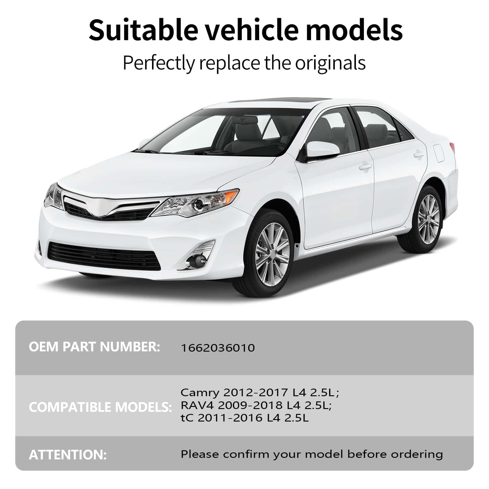 1. Modelos aplicables: Camry 2012-2017 L4 2.5L, RAV4 2009-2018 L4 2.5L, Scion tC 2011-2016 L4 2.5L.