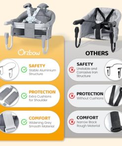 La Silla Alta de Viaje de Orzbow se puede plegar y montar rápidamente, su funda es fácilmente lavable y viene con una bolsa de almacenamiento para accesorios de bebé. Disfruta de comidas en casa, salidas o cenar con otras mamás de manera segura y cómoda con esta silla de comer para bebé.