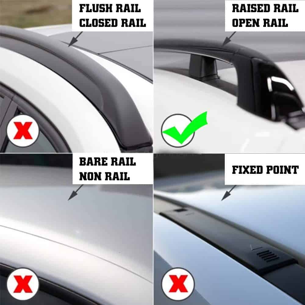 Barras transversales de techo de Otherya Riel lateral elevado necesario con un espacio, NO se ajusta a rieles empotrados o a un techo desnudo.
