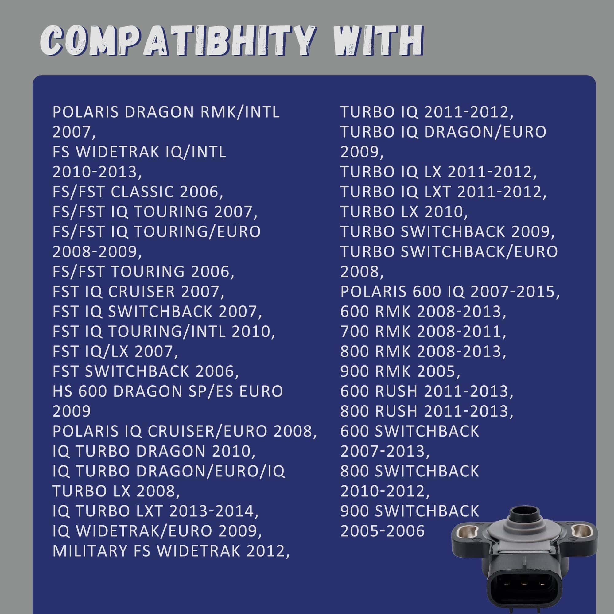 Este sensor de posición del acelerador OTINUBEE 3131591 es compatible con una amplia gama de modelos Polaris, incluidos 600 IQ 2007-2015, 600 RMK 2008-2013, 700 RMK 2008-2011, 800 RMK 2008-2013, 900 RMK 2005, 600 RUSH 2011-2013, 800 RUSH 2011-2013, 600 Switchback 2007-2013, 800 Switchback 2010-2012, 900 Switchback 2005-2006. Este sensor es resistente y está diseñado para reemplazar su sensor de posición del acelerador si está roto, agrietado, obstruido más allá de la reparación o si no se mantiene correctamente alineado.