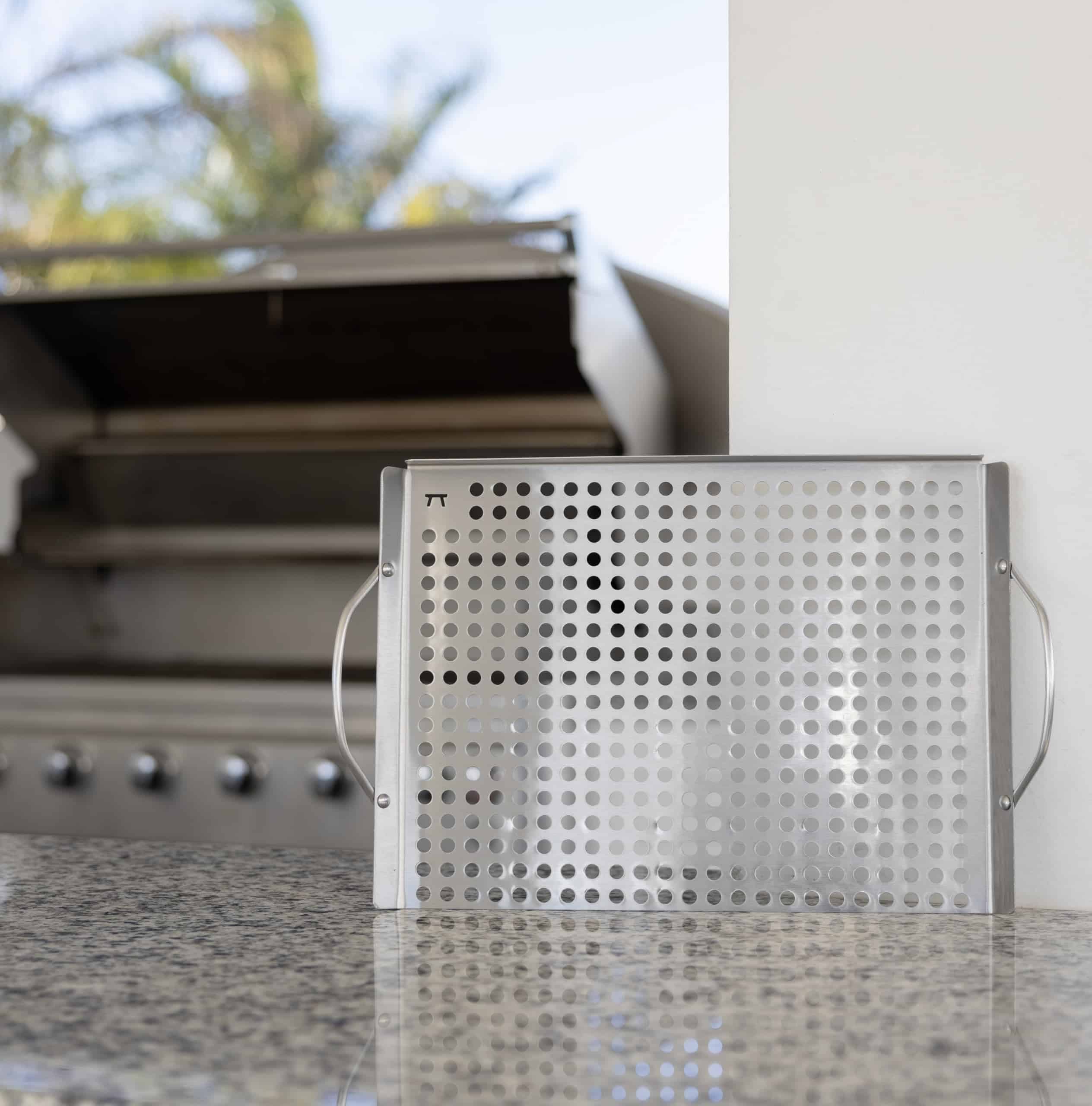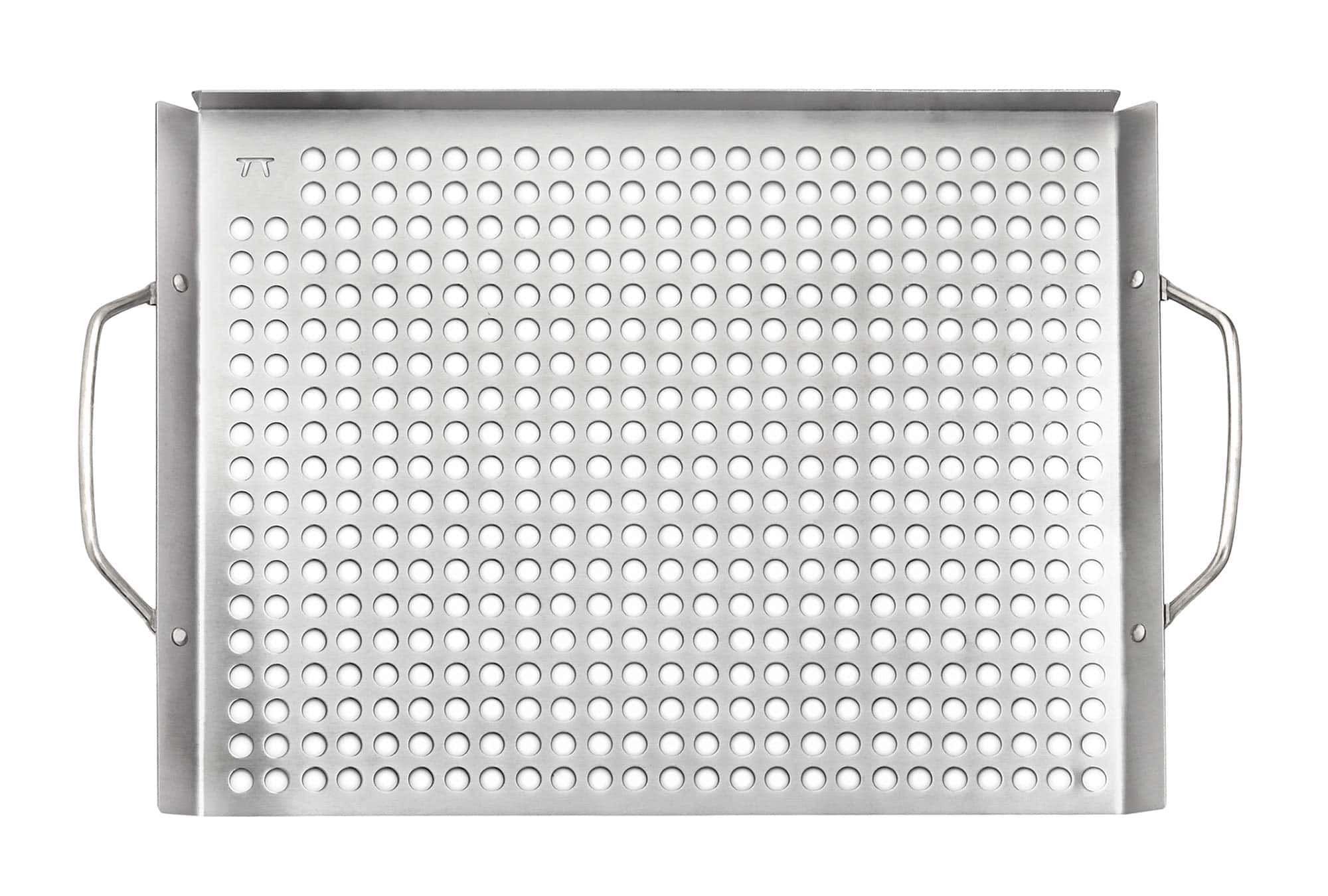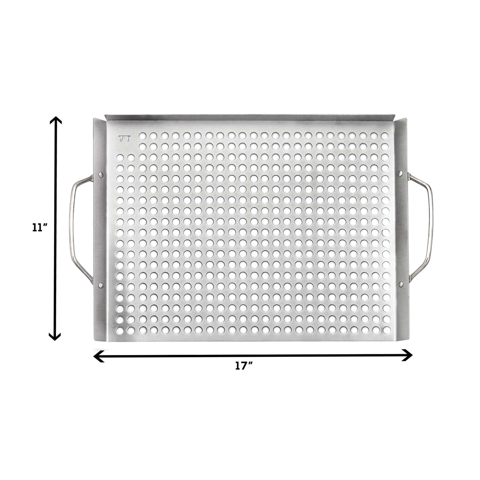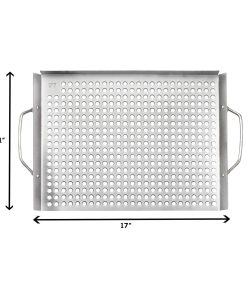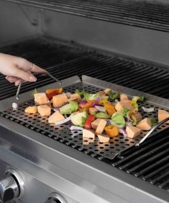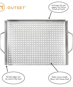 ¡Todos los asadores saludables! La Rejilla de Acero Inoxidable Outset es perfecta para cocinar y asar alimentos saludables. Esta parrilla hace que cocinar cortes más pequeños y delicados de pescado, carne y verduras sea fácil. La superficie de parrilla perforada mejorará los sabores naturales de sus alimentos y le dejará con ganas de más, todo mientras evita que los objetos pequeños se deslicen por la parrilla. Las prácticas asas integradas facilitan el transporte. Construida con acero inoxidable forjado duradero, este conjunto de rejillas para parrilla proporciona la máxima facilidad para asar. El tamaño grande de 11″ x 17″ es perfecto para asar porciones grandes para toda la familia. Diseñadas para resistir altas temperaturas, estas rejillas para parrilla pueden manejar el chisporroteo!