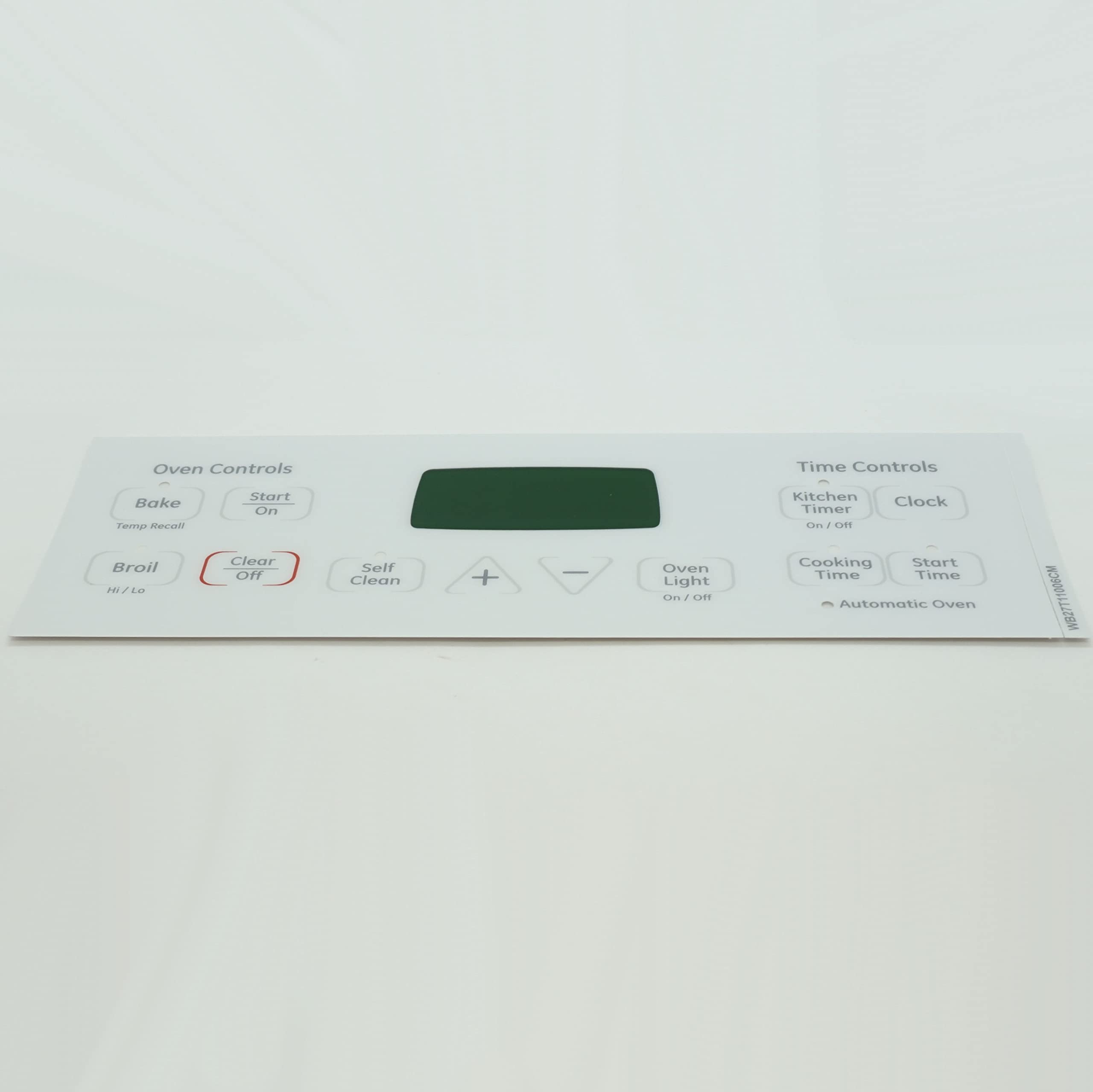 Nuevo overlay de reloj para estufas Choice Manufactured Parts (WB27T11006CM) que reemplaza el número de parte de General Electric, Hotpoint, RCA, WB27T11006. Overlay de 12 botones. Utilizado con las placas WB27T11276 y WB27T11311.