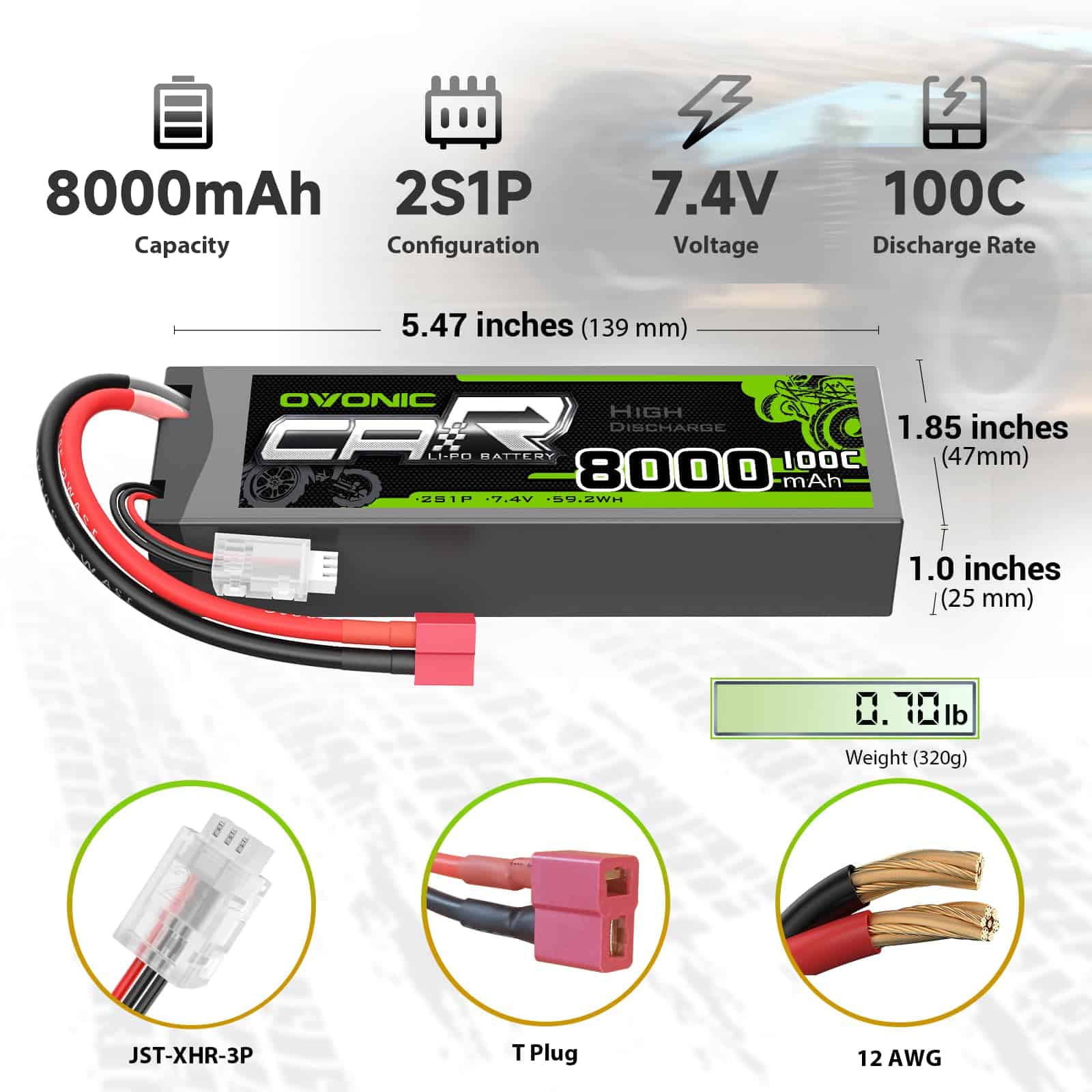 OVONIC Batería Lipo 8000mAh 100C 7.4V 2S con Conector T