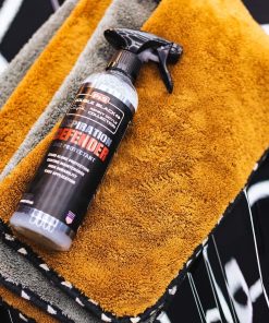 DEFENDER SiO2 Protectant es el producto ideal tanto para profesionales como para entusiastas para usar como un tratamiento para revestimientos de inspiración y otros revestimientos o como un protector independiente de SiO2. Defender SiO2 Protectant (DSP) es muy fácil de aplicar y usar en la mayoría de los entornos. Defender crea un brillo increíble, suavidad y protección duradera. Aunque Defender es principalmente para superficies pintadas, también se puede utilizar en metal, vidrio y molduras. Siempre aplique sobre una superficie fresca cuando sea posible y fuera de la luz solar directa. Defender se puede aplicar directamente sobre la superficie de la pintura o rociado sobre una toalla de microfibra y aplicado con un paño.