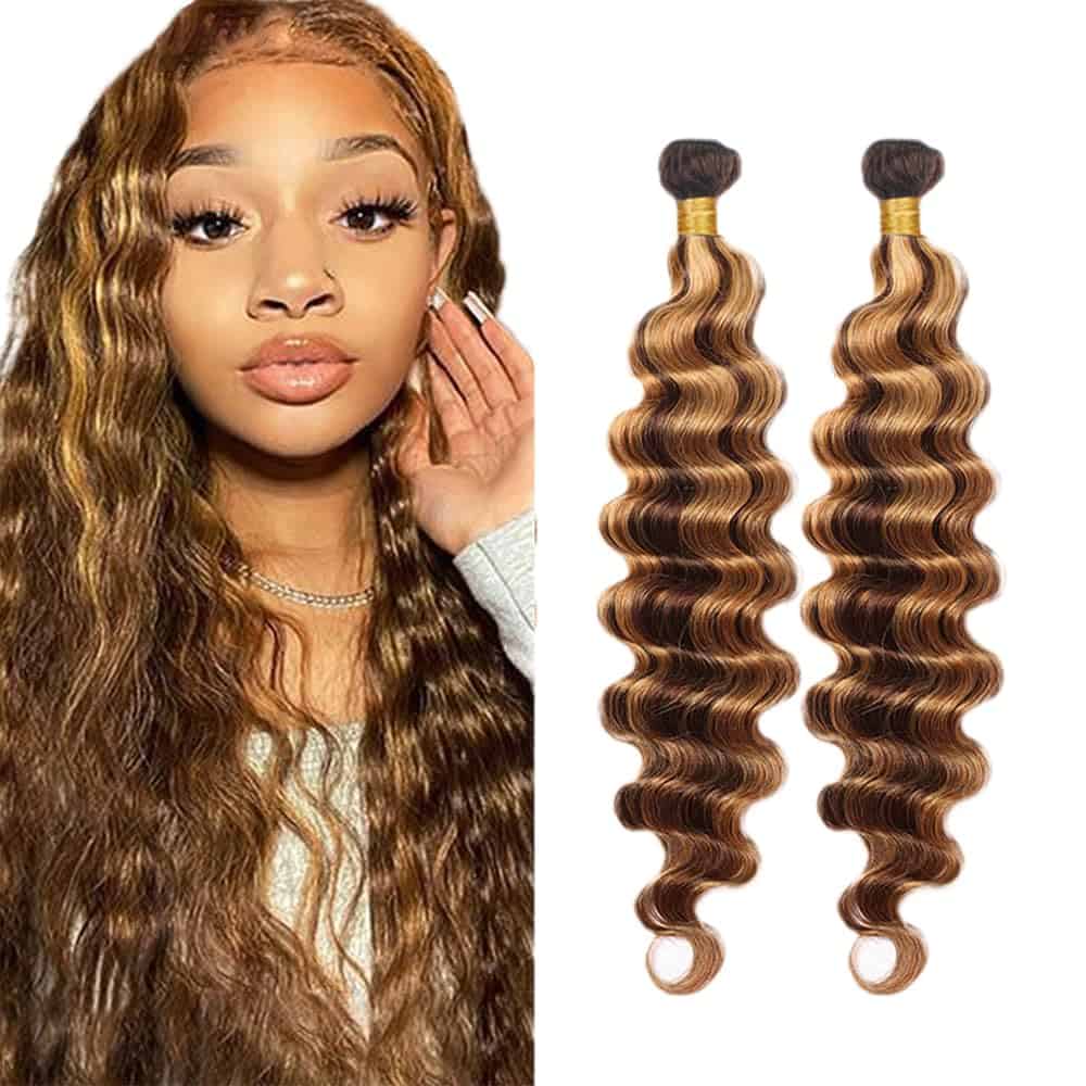 3. Color de las Extensiones de Cabello Humano: P4/27 Mezcla de Marrón Destacado con Rubia Ondas Profundas de Cabello Humano.