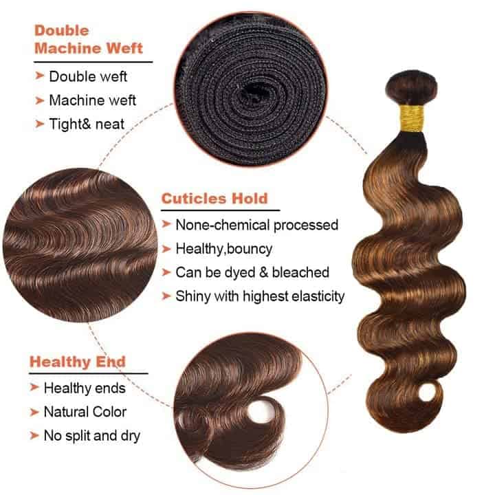 3. Color de los Paquetes de Cabello Humano: Color Café Claro Ondulado de Ondas de Cuerpo P430. Se puede teñir, alisar, hacer permanente, blanqueado, resaltado, rizado o estilizado como su propio cabello.