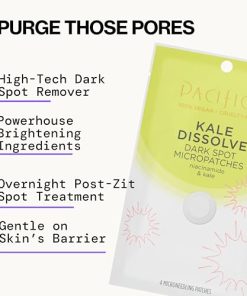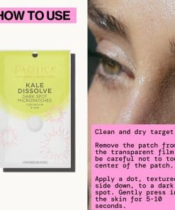 Borre las manchas oscuras con los Parches Micropatch de Pacifica Kale Dissolve Dark Spot. ¡Parches pequeños, grandes resultados! Estos innovadores parches son un cambio de juego para cualquier persona que tenga manchas oscuras difíciles, parches de melasma o marcas de acné. A diferencia de las cremas que se quedan en la superficie, cada parche transparente utiliza pequeñas micro-agujas auto-disolventes para entregar ingredientes iluminadores potentes debajo de la superficie de la piel. Es como una sesión mini de microneedling enfocada en su mancha oscura, pero completamente indolora y fácil de hacer en casa. Simplemente aplique un parche directamente sobre la mancha que desea desvanecer y deje que funcione su magia.