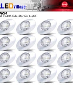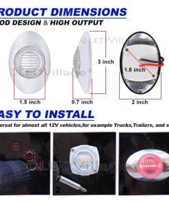 (Pack de 16) 3 Luces de Marcador Lateral LED Rojo Ovaladas Ledvillage 3 LED 12V DC Características: 100% Nuevo Responde más rápido que la luz tradicional Mejora impermeable, a prueba de golpes y vibraciones Proporciona garantía de 1 año Larga vida útil de 50,000 horas Especificaciones: Marca: Ledvillage Número de LED: 3 LED Color de la luz: Rojo Color de la lente: Transparente Voltaje de funcionamiento: 12V DC Distancia entre agujeros: 1.2 pulgadas Material de la lente: PC Material de la carcasa: Bisel cromado Dimensiones sin cromo: 1.7 x 1.7 x 0.7 (L x A x H) Dimensiones con cromo: 3 x 2 x 0.7 (L x A x H) Aplicaciones: Luz de freno, Luz de marcador lateral, Luz de remolque, Luz de RV, Luz exterior, Luz de marcha, Luz de techo/cabina/panel, Etc. Paquete incluye: 16 x Luz de Marcador Lateral Roja Ovalada de 3 Pulgadas 3 LED 16 x Bisel cromado 32 x Tornillos