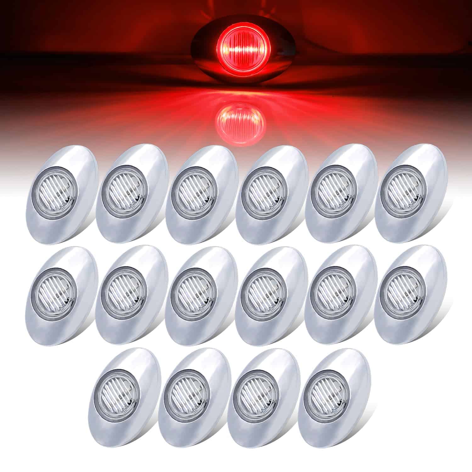 [Pack de 16] Luces de Marcador de Panel LED Rojo Ovalado de