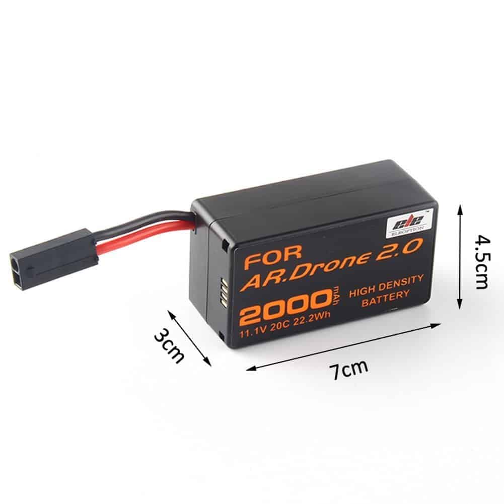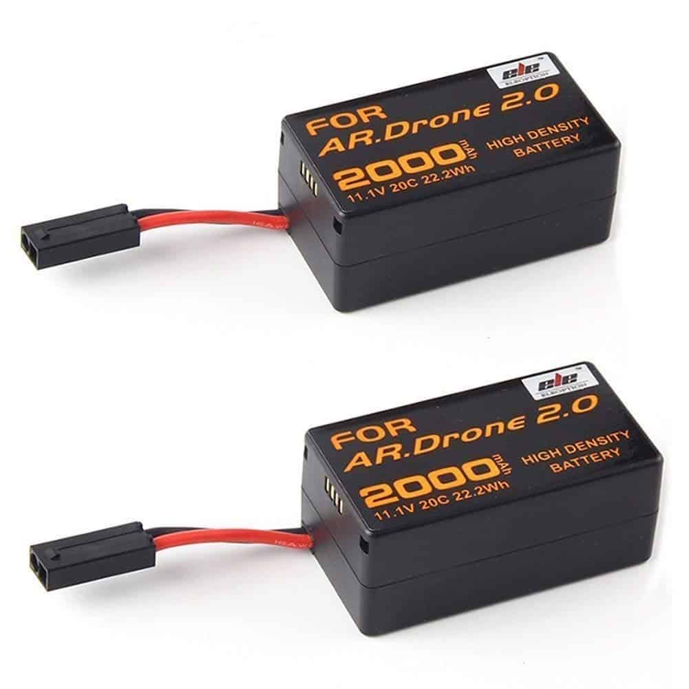 Es el máximo rendimiento y tiempos de vuelo prolongados para tu Parrot AR.Drone 2.0. Batería recargable de polímero de litio de alta calidad con descarga continua de 20C, con mucho tiempo de vuelo. Incluye un módulo de circuito de protección PCM que protege la batería contra sobre carga, sobre descarga y cortocircuitos. Paquete incluye 2 baterías y son adecuadas para la aeronave Parrot AR.Drone (aeronave no incluida en el paquete). Características: Batería recargable de polímero de litio de alta calidad con descarga continua de 20C. Con mucho tiempo de vuelo. Excelente mano de obra y aspecto hermoso. Incluye 2 baterías de polímero de litio potentes de 2000mAh 11.1V.