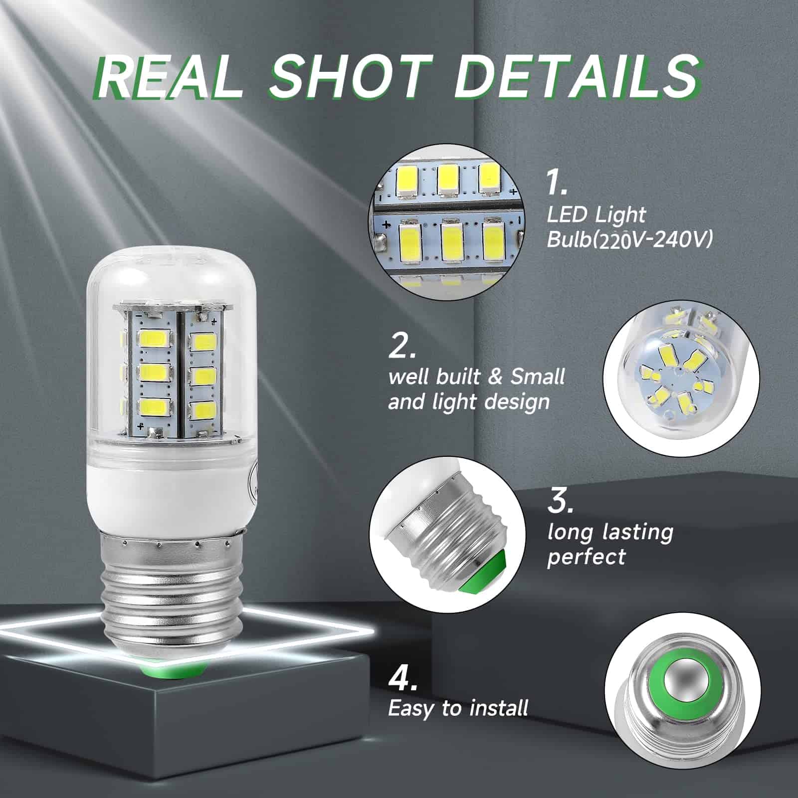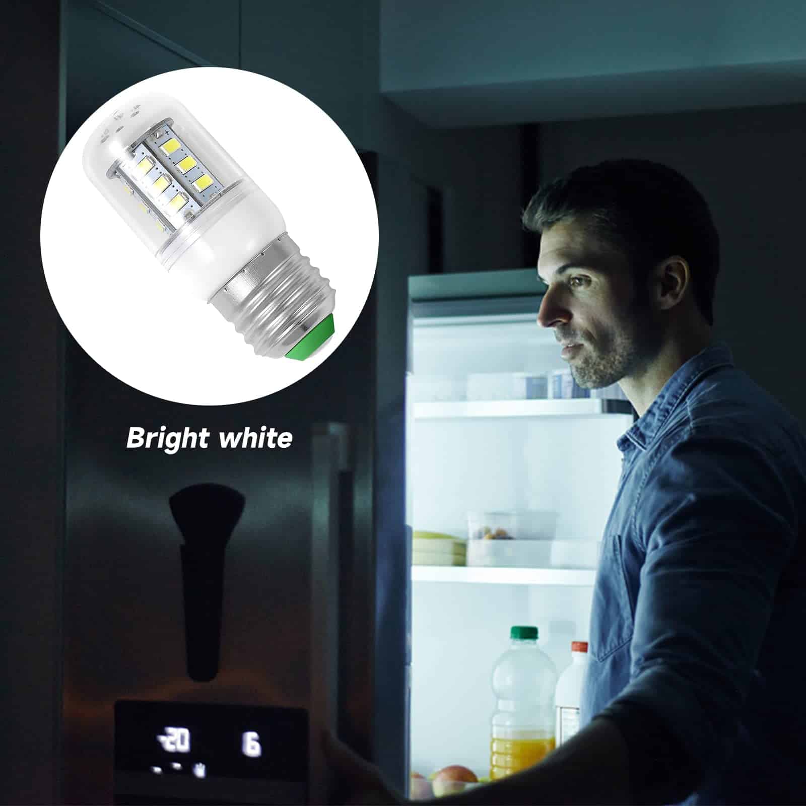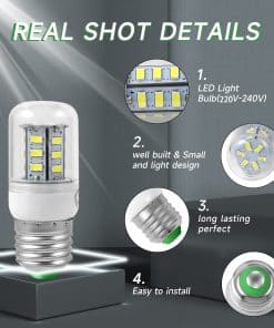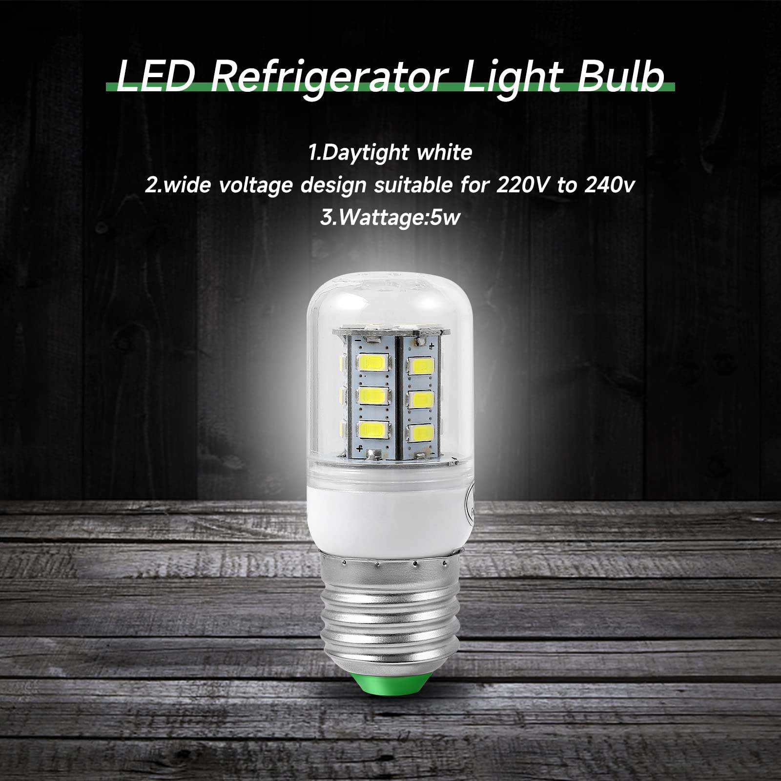 Pack de 2 Bombillas LED para Refrigerador 5304511738 de ELIUNG, adecuadas para frigoríficos Ken-More y Cro-sley, entre otros modelos compatibles. Estas bombillas de luz LED para refrigerador están hechas de material de alta calidad y duradero, garantizando una luz uniforme sin parpadeo. Con un voltaje de 220v-240v y una potencia de 5w, estas bombillas tienen una vida útil de más de 100,000 horas. Además de ser utilizadas como reemplazo de bombillas de refrigerador, también se pueden utilizar como lámparas de escritorio, lámparas de lectura o para iluminación diaria en la cocina y dormitorio, entre otras aplicaciones. Disfruta de una compra sin preocupaciones con este pack de bombillas LED para refrigerador 5304511738.