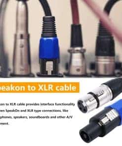 Detalle del paquete: – Cable SpeakOn Macho a XLR Hembra de 10 Pies 2pcs Los cables speakon se utilizan a menudo para aplicaciones de audio de alta corriente. Estos cables son los cables estándar para amplificadores y altavoces potentes. Este cable cuenta con un conector macho speakON de 4 polos y conectores hembra XLR de 3 pines. Internamente, este cable está hecho de cobre libre de oxígeno de calibre 16 (OFC) para una menor resistencia. Nuestros cables speakon están diseñados con las tolerancias más estrictas para proporcionar una calidad de sonido superior. Características generales: – Tipo de conector: macho speakon a hembra XLR de 3 polos – Número de conductores de alambre: 2 conductores – Rango de conectores XLR sellados y resistentes para ambientes exigentes. – Conectores completamente blindados con un mecanismo de bloqueo para una seguridad de conexión adicional. – Todos los conductores de cobre y apantallamiento de espiral de cobre interno; el cable apantallado reduce interferencias y ruido excesivo. Amplia Aplicación: – Extienda las conexiones entre micrófonos y altavoces, amplificadores y equipos electrónicos de audio/video. – El XLR es un tipo de conexión utilizado principalmente en aplicaciones de audio/video profesionales/comerciales, como conexiones de micrófonos. – Este cable proporciona funcionalidad de interfaz entre los tipos de conexión SpeakOn y XLR, para que pueda conectar entre micrófonos, altavoces y otros equipos de audio/video que no tengan los mismos tipos de conexión.