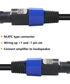 Paquete incluido: – 20FT Speakon Hombre Cable 2 pack. Los conectores de cable speakOn son el estándar de la industria para conexiones de amplificador / altavoz. Los conectores han sido diseñados para operar en un entorno de carga inductiva de alta corriente de altavoces. Los conectores de cable cuentan con una robusta carcasa de plástico, un principio de bloqueo único y contactos a prueba de contacto. Cuentan con contactos sólidos con terminales tipo tornillo que ofrecen también protección de cable trenzado que también ofrece terminación por soldadura. Características generales: – Conector: compatible con puertos NLM4 SpeakOn. – Material del cable: Cobre libre de oxígeno. – Forro del cable: PVC cubierto completamente blindado. – Diseño de bloqueo de giro asegura una conexión más segura. – Número de conductor: 2 cables. – Hasta 30 A de corriente rms. Aplicación en: Para usar entre el amplificador de potencia y el gabinete del altavoz o para enlazar varios gabinetes juntos. – Cualquier aplicación de altavoz de alta potencia, como: – Monitores de escenario. – Altavoz de la casa. – Subwoofers. – Y muchos otros usos. Nota: – El cable SpeakOn no es para aplicaciones bi-amplificador. – Los conectores de 4 polos a menudo se utilizan para conexiones de 2 conductores. – Los conectores de 4 polos NO se ajustan a puertos de tipo 2 polos. – Disponible en SpeakOn Cable de 10 pies, 20 pies, 50 pies y Cable SpeakOn Macho a XLR Hembra de 10 pies.