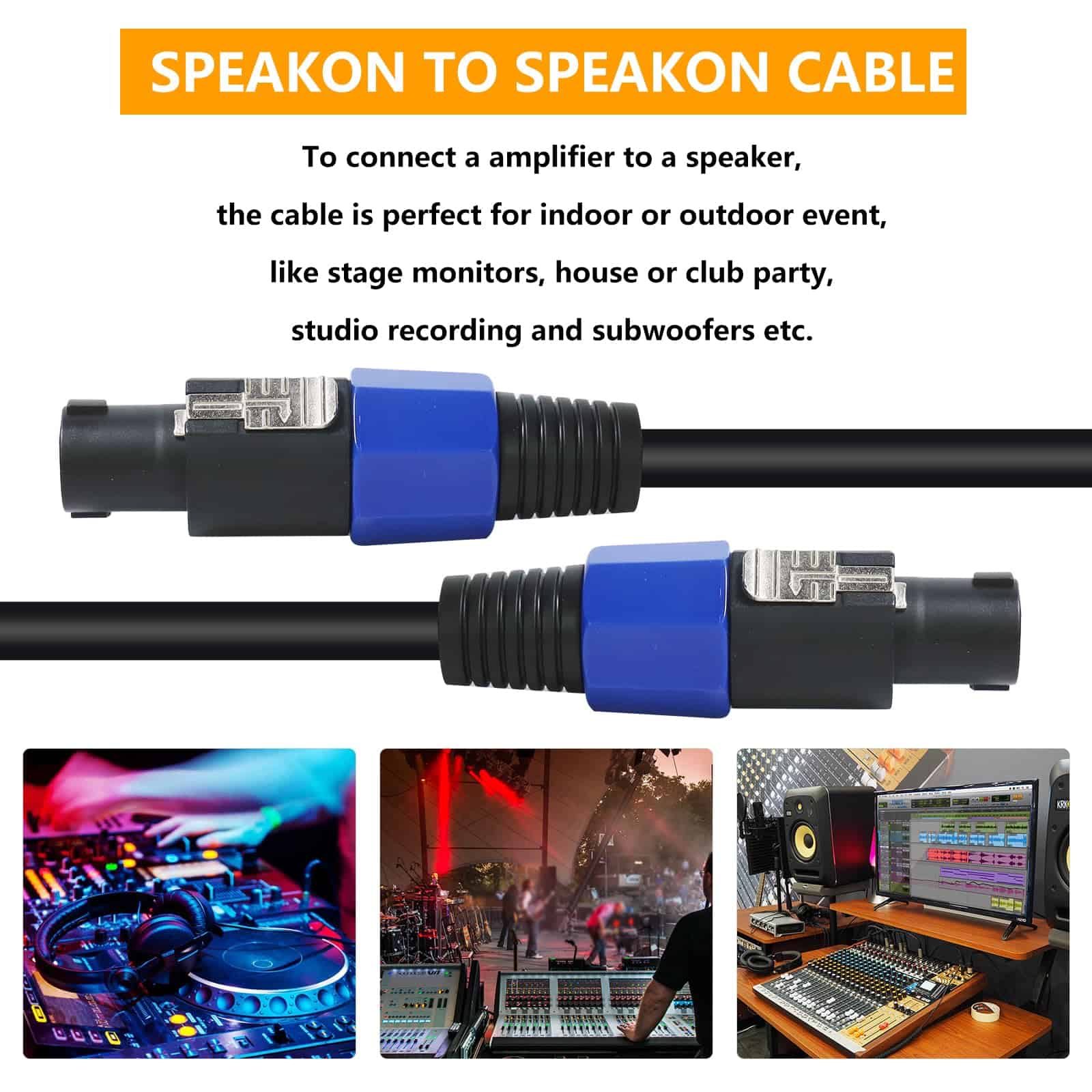 Pack de 2 Cables SpeakOn de 20 Pies – 2pcs DJ PA Audio Jack