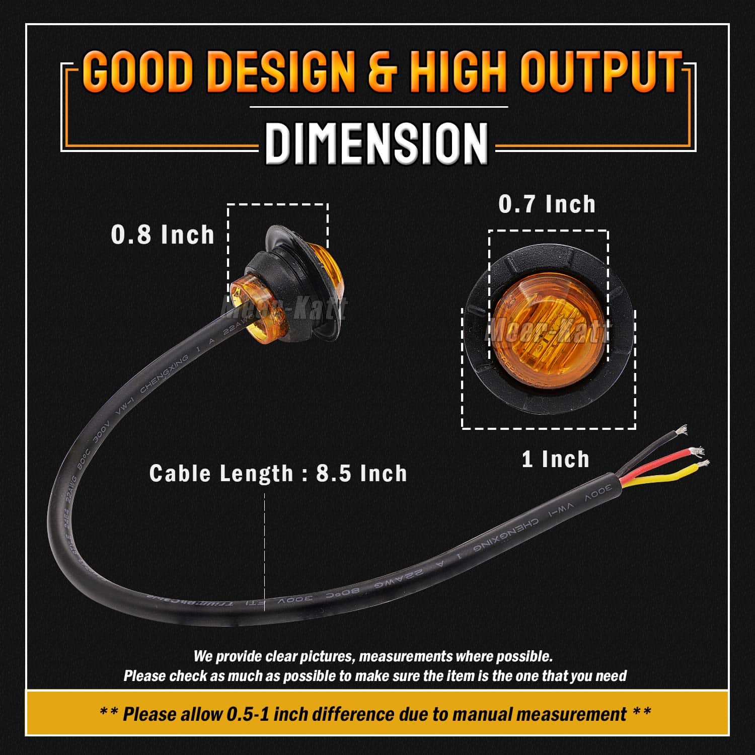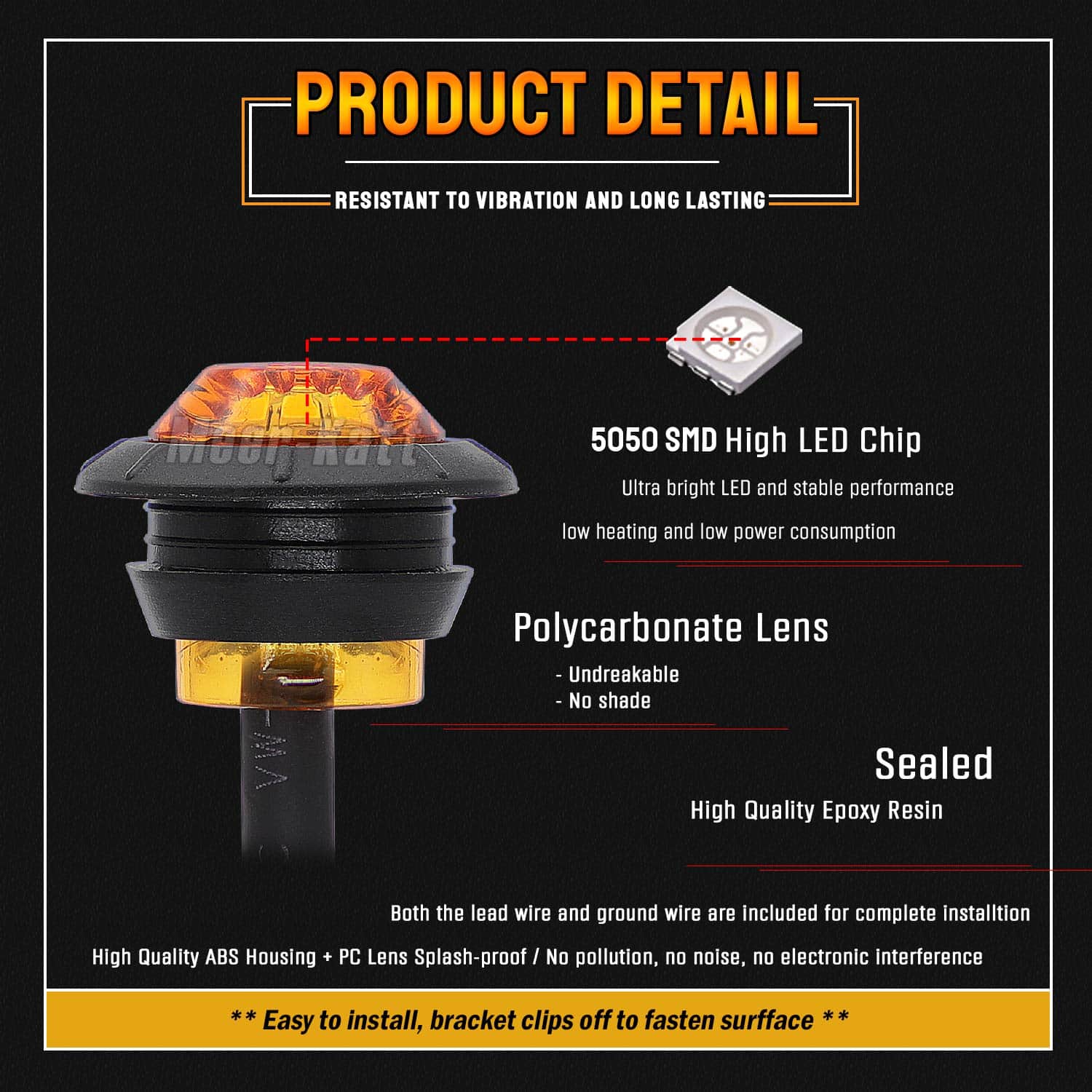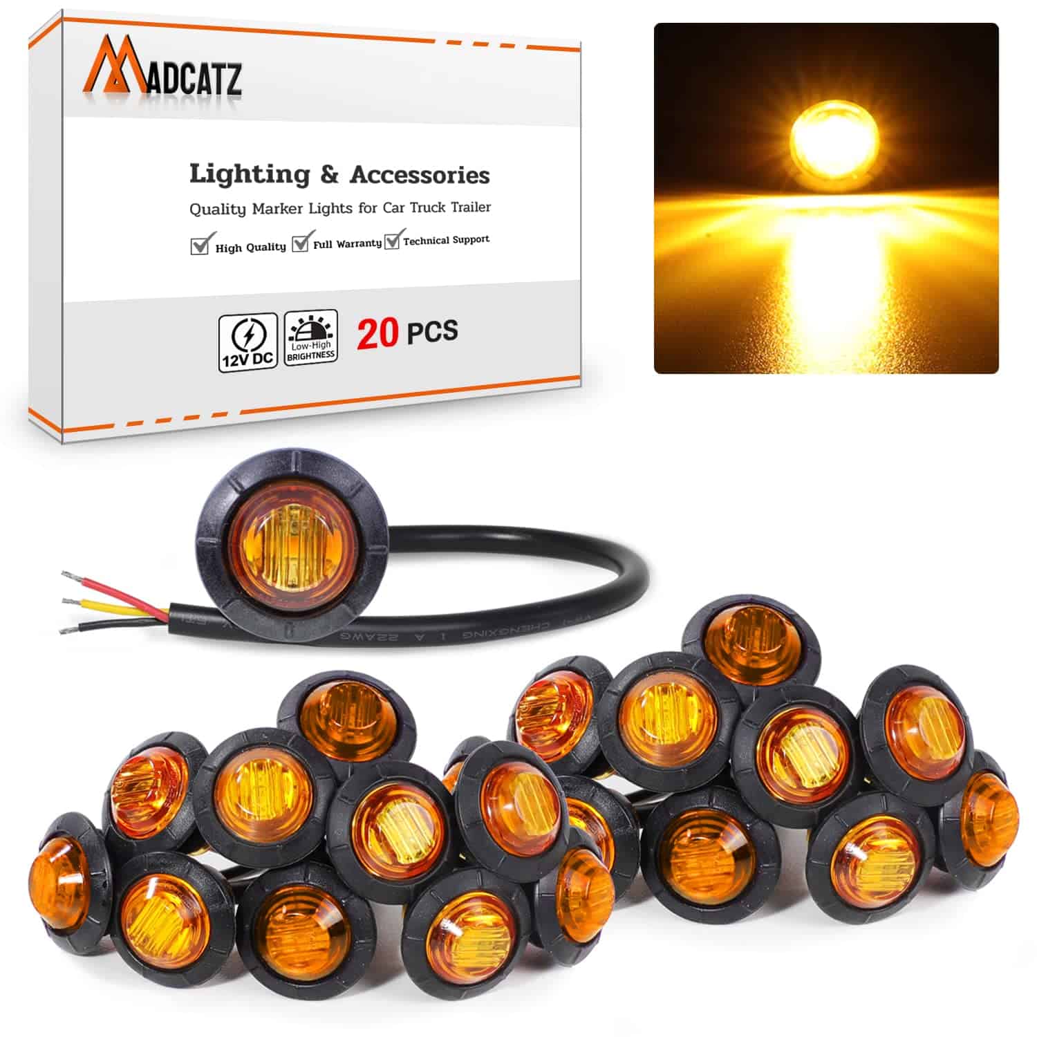 2. Pack Incluido: Este producto se vende como 20 piezas de luces de marcador lateral redondas de ámbar de 3/4 pulgadas que incluyen junta de goma en el set, el led viene en tamaño mini, no ocupará una gran cantidad de áreas para instalar.