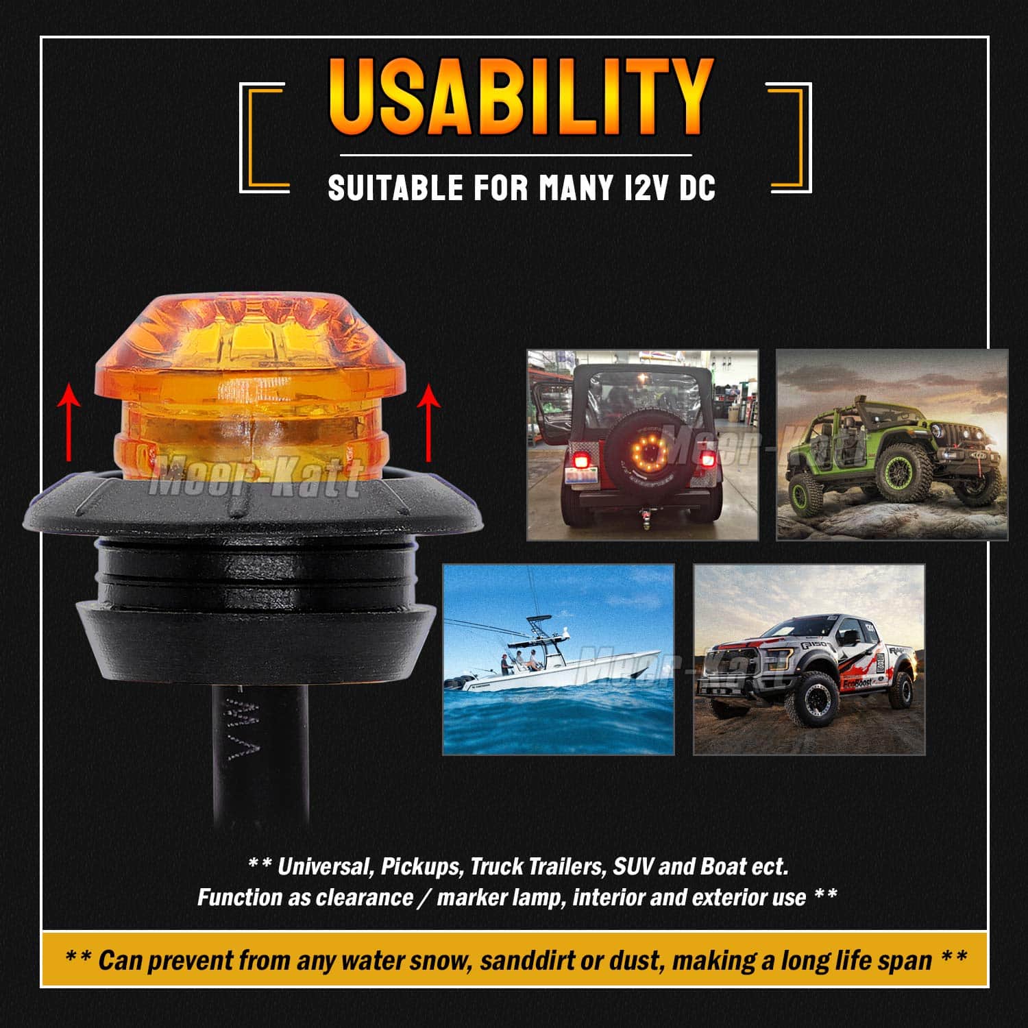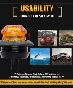 3. Calificación y Uso: Estas luces tienen un buen rendimiento; resistente al agua, a prueba de golpes y a prueba de vibraciones, añade una gran funcionalidad y se utiliza ampliamente para cualquier vehículo de 12V DC como Camión, RV, Remolque, Autos de Cabina, Caravanas, Remolques, Pickups, Camiones, etc.
