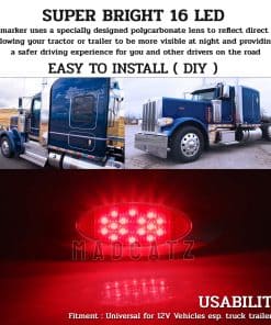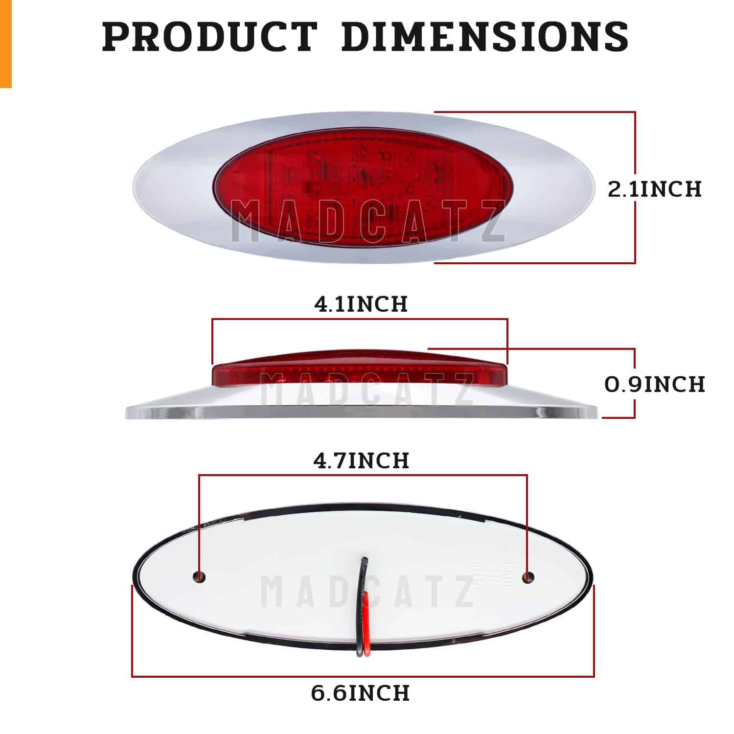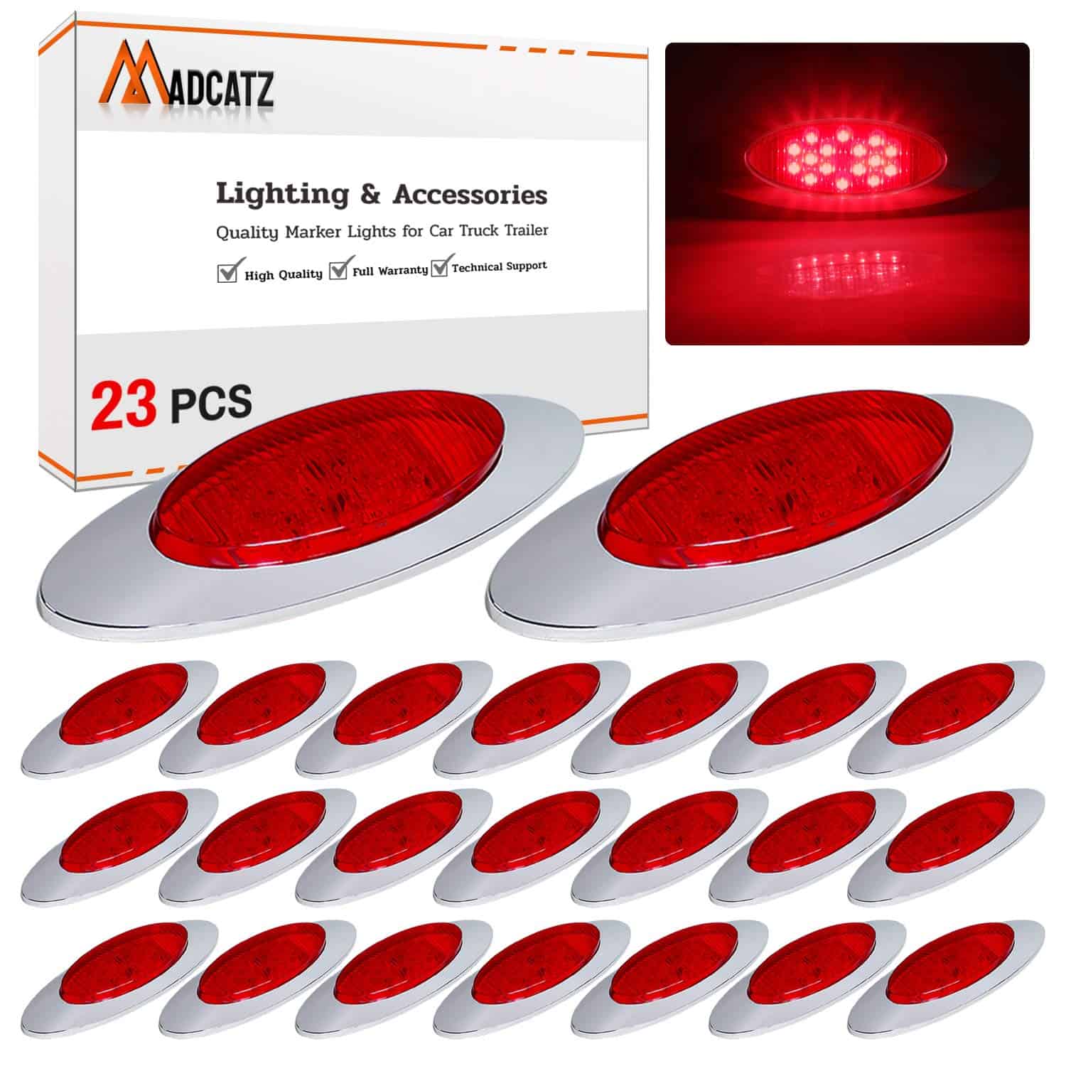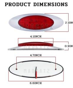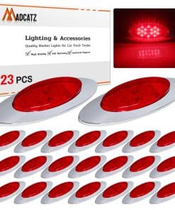 (Pack de 23) 6,5 Luces Marcadoras Laterales Ovaladas Rojas LED de MADCATZ 16 LED 12V CC Características: 100% Nuevo Responde más rápido que la luz tradicional Resistente al agua, a prueba de golpes y vibraciones Garantía de 12 meses Larga vida útil de 50,000 horas Especificación: Marca: MADCATZ Número de LED: 16 LED Color de la luz: Rojo Color de la lente: Rojo Voltaje de operación: 12V CC Material de la lente: PC Material de la carcasa: Bisel cromado Dimensiones con cromo: 6.6 x 2.1 x 0.9 (L x A x H) Uso Universal: Luz de Aleta Luz lateral Luz de remolque Luz de RV Luz exterior Etc,. Paquete incluido: 23 x Lámpara Marcadora Lateral Roja Ovalada de 6,5 LED 23 x Bisel cromado 46 x tornillos