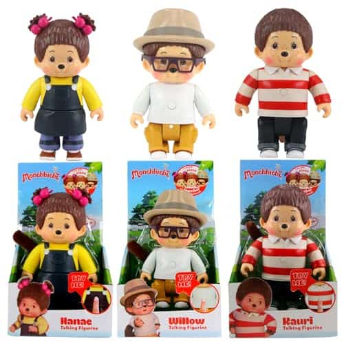 Pack de 3 figuras articuladas con voz de Monchhichi – 5″ 13cm Kauri, Hanae & Willow – Set de todos los 3 – 15 frases
