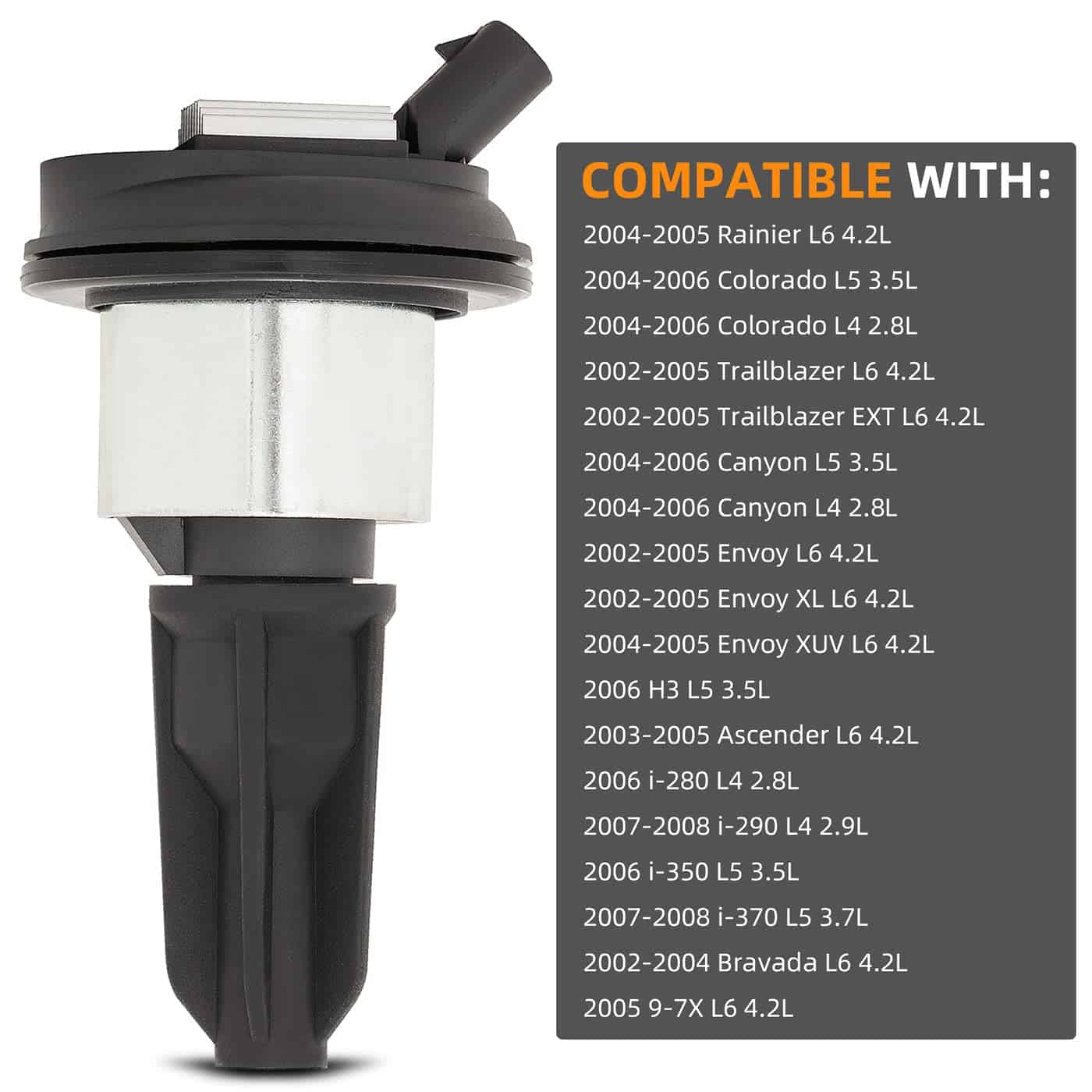 Compatibilidad: 2004-2005 Buick Rainier L6 4.2L, 2004-2006 Chevy Colorado L5 3.5L, 2004-2006 Chevy Colorado L4 2.8L, 2002-2005 Chevy Trailblazer L6 4.2L, 2002-2005 Chevy Trailblazer EXT L6 4.2L, 2004-2006 GMC Canyon L5 3.5L, 2004-2006 GMC Canyon L4 2.8L, 2002-2005 GMC Envoy L6 4.2L, 2002-2005 GMC Envoy XL L6 4.2L, 2004-2005 GMC Envoy XUV L6 4.2L, 2006 Hummer H3 L5 3.5L, 2003-2008 Isuzu Ascender L6 4.2L, 2006 Isuzu i-280 L4 2.8L, 2007-2008 Isuzu i-290 L4 2.9L, 2006 Isuzu i-350 L5 3.5L, 2007-2008 Isuzu i-370 L5 3.7L, 2002-2004 Oldsmobile Bravada L6 4.2L, 2005 Saab 9-7X L6 4.2L. Incluye: 5pcs de bobinas de encendido precargadas/pretesteadas. Condición del artículo: Nuevo en paquete original de fábrica. Materiales: Bobina: Cobre de alto rendimiento fabricado en Alemania. Característica: Todas nuestras bobinas de cobre se fabrican en Alemania. Los productos se ensamblan al vacío para garantizar calidad. Cada parte se prueba cuidadosamente para proporcionar piezas de alta calidad a nuestros clientes. El producto se fabrica en instalaciones certificadas ISO 9000 / ISO 9001 / ISO 9002. 100% probado mecánicamente antes de salir de la fábrica garantiza un rendimiento óptimo y durabilidad mejorada. Reemplazo directo. Fácil de instalar. Cumple con estrictos estándares de control de calidad. Usamos bobina de cobre fabricada en Alemania con una maravillosa conductividad eléctrica.