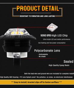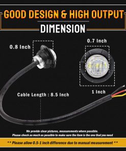 (Pack de 50) 3/4″ Luces de Marcador Lateral Mini Redondas con Lente Clara y Goma 3 LED 12V DC