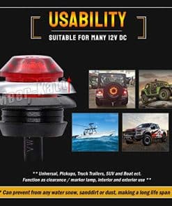 (Pack de 50) Luz indicadora lateral redonda mini de 3/4″ roja con anillos cromados 3 LED 12V DC Características: 100% nuevo Baja temperatura y bajo consumo de energía Sin sombra de color apagado Lente con material de plástico ABS Resistente al agua, luz robusta y duradera Especificaciones: Marca: MADCATZ Número de LED: 3 LED Color de la luz: Rojo Color de la lente: Rojo Tamaño de la luz: 0.8 x 0.8 x 1.1 (L x An x Al) Diámetro: 0.8 Voltaje operativo: 12V DC Material de la carcasa: Arandela y bisel de acero Tipo de lente: Lente de PC Funciona como: Luz indicadora lateral Luz exterior Remolque Luz de camión Señal, luz de cola, luz trasera Luz indicadora incluida en el paquete: 50 x Luz indicadora lateral roja de 3/4 50 x Anillos cromados 50 x Arandelas negras