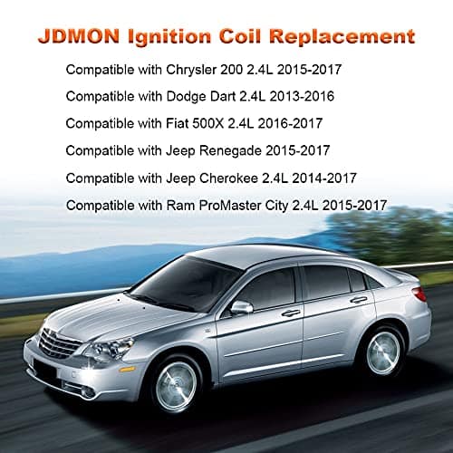 Compatible con Chrysler 200 2.4L 2015-2017 Compatible con Dodge Dart 2.4L 2013-2016 Compatible con Fiat 500X 2.4L 2016-2017 Compatible con Jeep Renegade 2015-2017 Compatible con Jeep Cherokee 2.4L 2014-2017 Compatible con Ram ProMaster City 2.4L 2015-2017 Reemplace OEM y Números de Parte: UF751 68242286AA 5C2113 GN10738 68242286AB Asegúrese de que la bobina de encendido sea compatible con su vehículo antes de comprarla