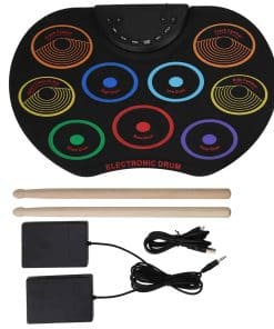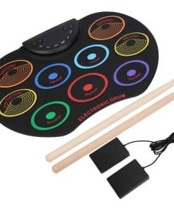 2. Con 9 coloridos pads de batería, incluyendo 3 tambores tom, 1 tambor tarola, 1 bombo, 3 platillos y 1 pedal de bombo, puede brindarte excelentes sonidos de batería.