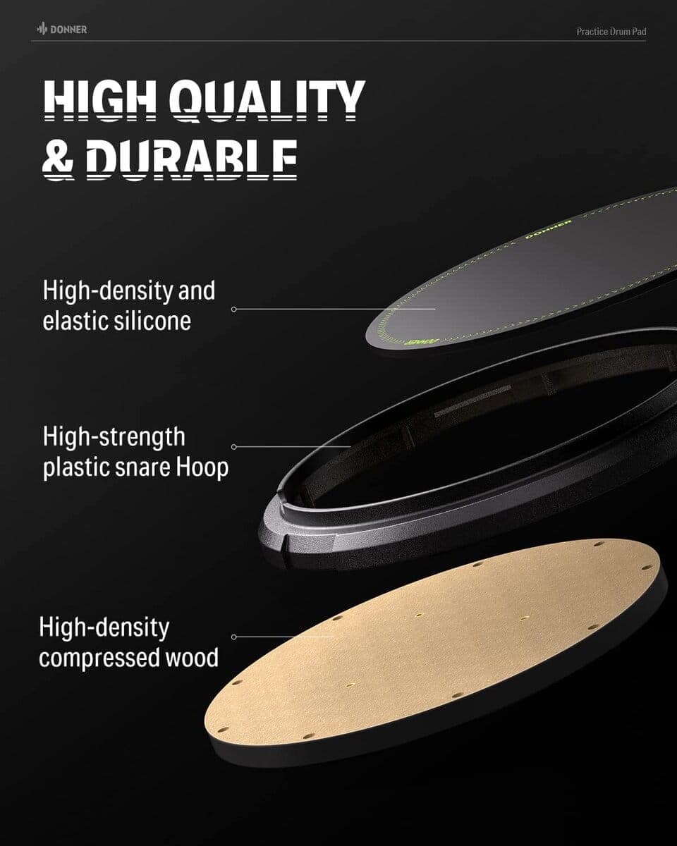 2. Constructor de técnicas. El Pad de práctica de batería de Donner es un evero Pad de práctica muy duradero. Ofrece una experiencia de juego auténtica. Es fácil de transportar, puedes practicar donde quieras.
