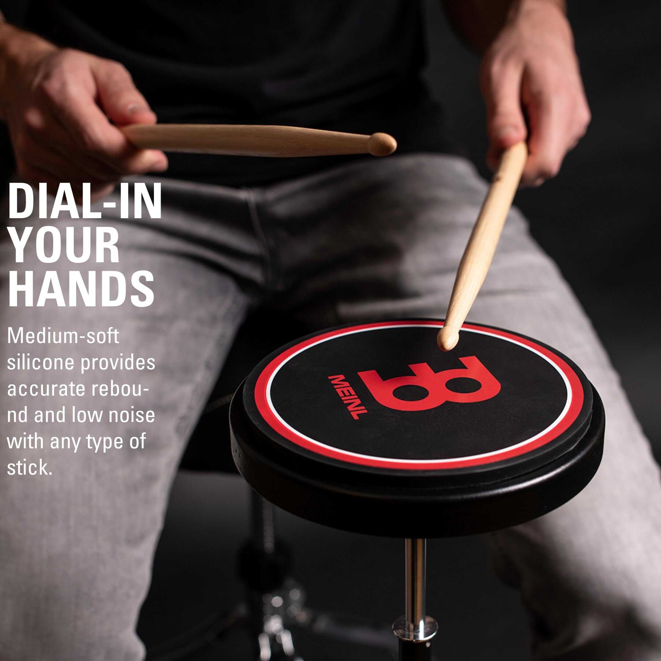 Las almohadillas de práctica Meinl están disponibles en diámetros de 6″ y 12″. La almohadilla de 6″ es perfecta para bateristas en movimiento, debido a su tamaño de bolsillo. La almohadilla de 12″ está diseñada para practicar silenciosamente en un tambor de caja e incluso se puede montar en un soporte de tambor de caja estándar.