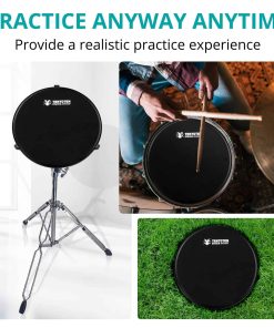 3. Practica en cualquier lugar que desees El pad de práctica de tambor es ligero y portátil, puedes practicar el pad de tambor de caja en casa o al aire libre. Funciona de forma flexible en cualquier superficie, incluyendo moqueta, mesa y cesta de tambor estándar. ¡Súper duradero para uso de niños, también!