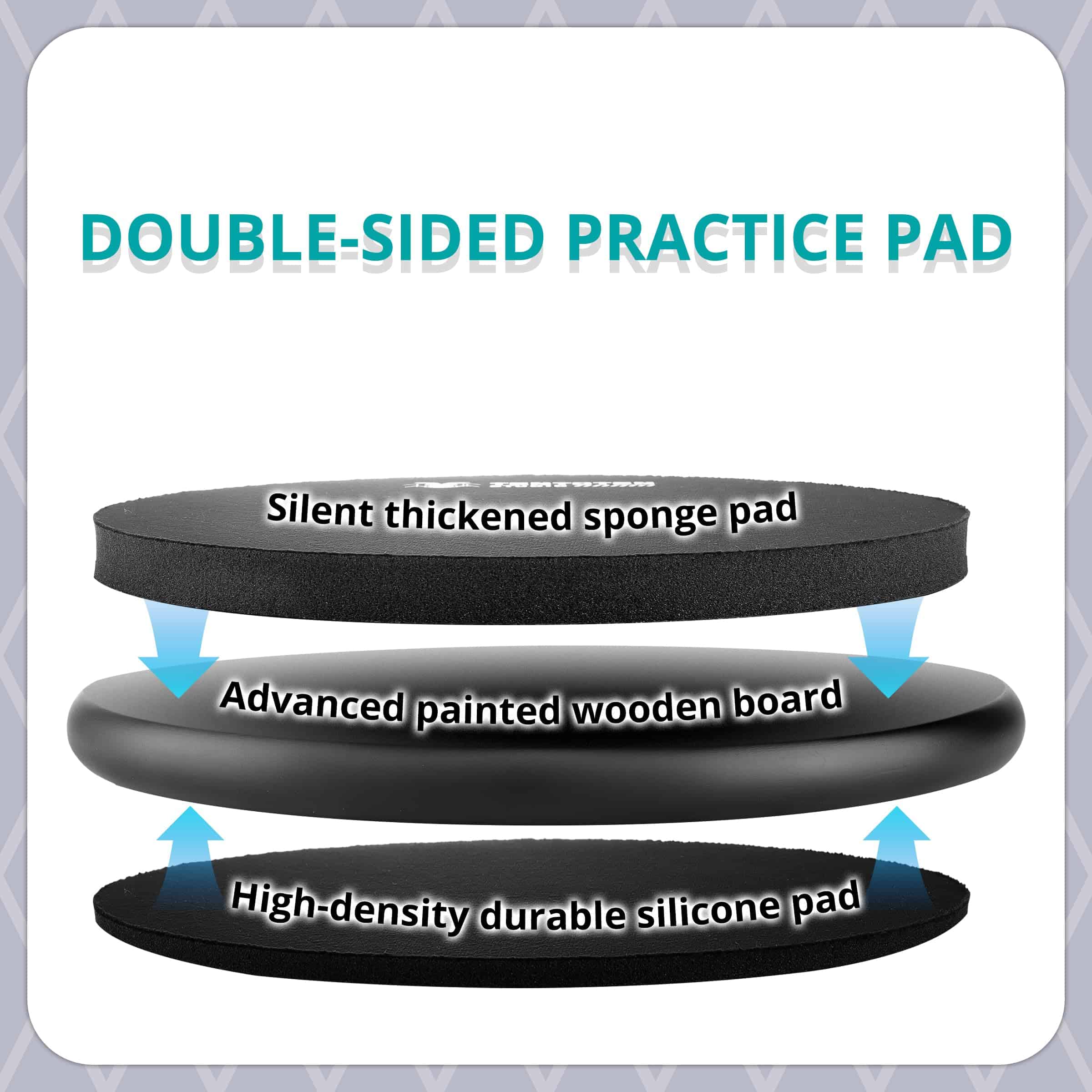 2. Pad de tambor silencioso sin ruido El pad de práctica de tambor está hecho de pad de silicona de alta densidad, tabla de madera y esponja silenciosa. Los pads de 2 lados tienen un buen amortiguamiento y aislamiento del sonido. Por lo tanto, no hay ruido y no tiene que preocuparse por afectar a otros mientras practica.
