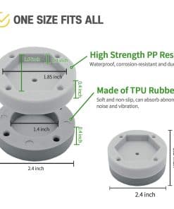 GRAN CALIDAD! – Este producto evita la vibración y el movimiento de la máquina. Desarrollamos este producto a través de un experimento directo. Mientras que los demás estaban hechos de goma, agregamos materiales plásticos para que los pads pudieran combinarse entre sí. Por lo tanto, es posible ajustar los pies de nivelación de la máquina. UN PAQUETE CON CUATRO PADS – Cada juego viene con cuatro pads anti vibración de What’s Up, uno va debajo de cada pata o pie de la lavadora o secadora. FÁCIL DE INSTALAR – No se necesitan herramientas ni adhesivos complicados. Simplemente levante cada esquina de la máquina y deslice los pads absorbentes de ruido en su lugar. Para mayor comodidad, nuestros pads están diseñados para adaptarse a todas las lavadoras y secadoras estándar con cuatro patas. ¡Es muy fácil pegar nuestros pies de goma. No omita el nivelado de las máquinas!
