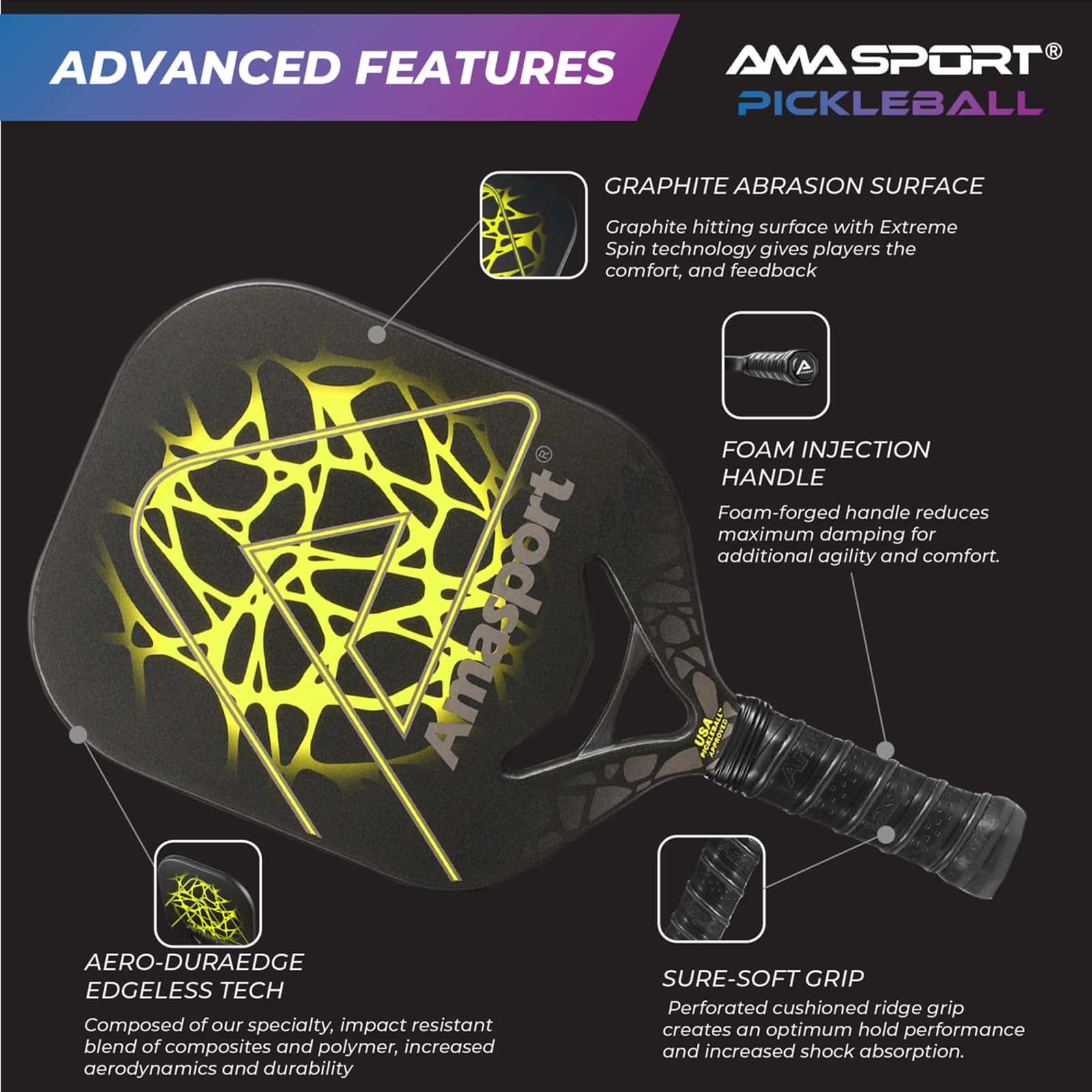 1. Forma de Pala Estándar con Mango Estándar: La Serie Matrix Future presenta el punto dulce más grande de todas las formas de pala de AMA Sport, la Serie Future ofrece potencia amplificada y consistencia confiable. Su forma tradicional y área de superficie extra grande se combina con un mango de carbono forjado para ofrecer a los jugadores un control definitivo en la pista.
