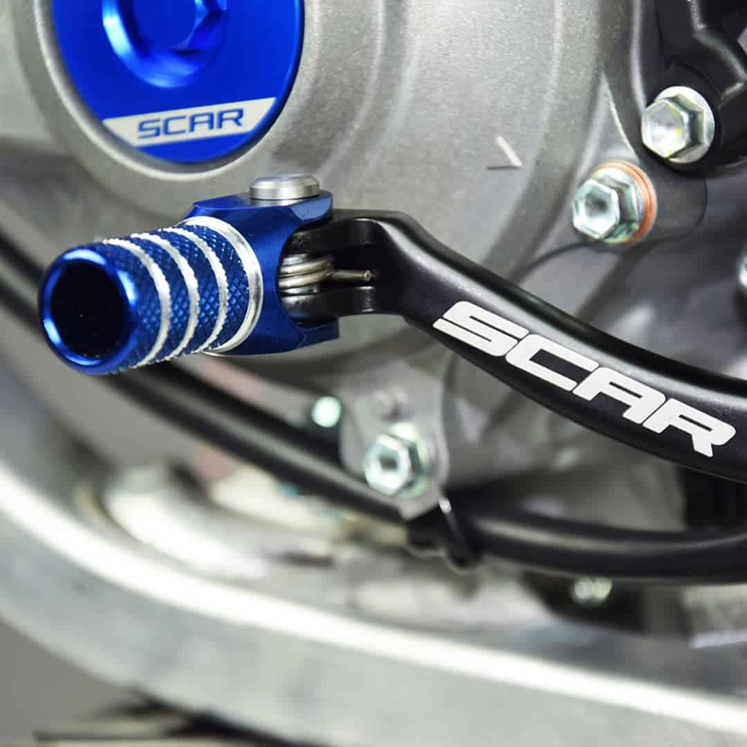 La palanca de cambio plegable SCAR forjada es compatible con varios modelos de motocicletas Yamaha, incluidos YZ450F, YZF, WR250 y 450, en los años 2018 al 2025. Fabricada en aluminio forjado de alta calidad, esta palanca de cambio ofrece durabilidad y resistencia. La punta está mecanizada por CNC y anodizada para una apariencia elegante y mejorar el rendimiento. Además, la punta estriada proporciona cambios de marcha más suaves y precisos. Diseñada, testeada y aprobada en el Campeonato Mundial por pilotos profesionales, esta palanca es la elección perfecta para los entusiastas de las carreras de motocross.