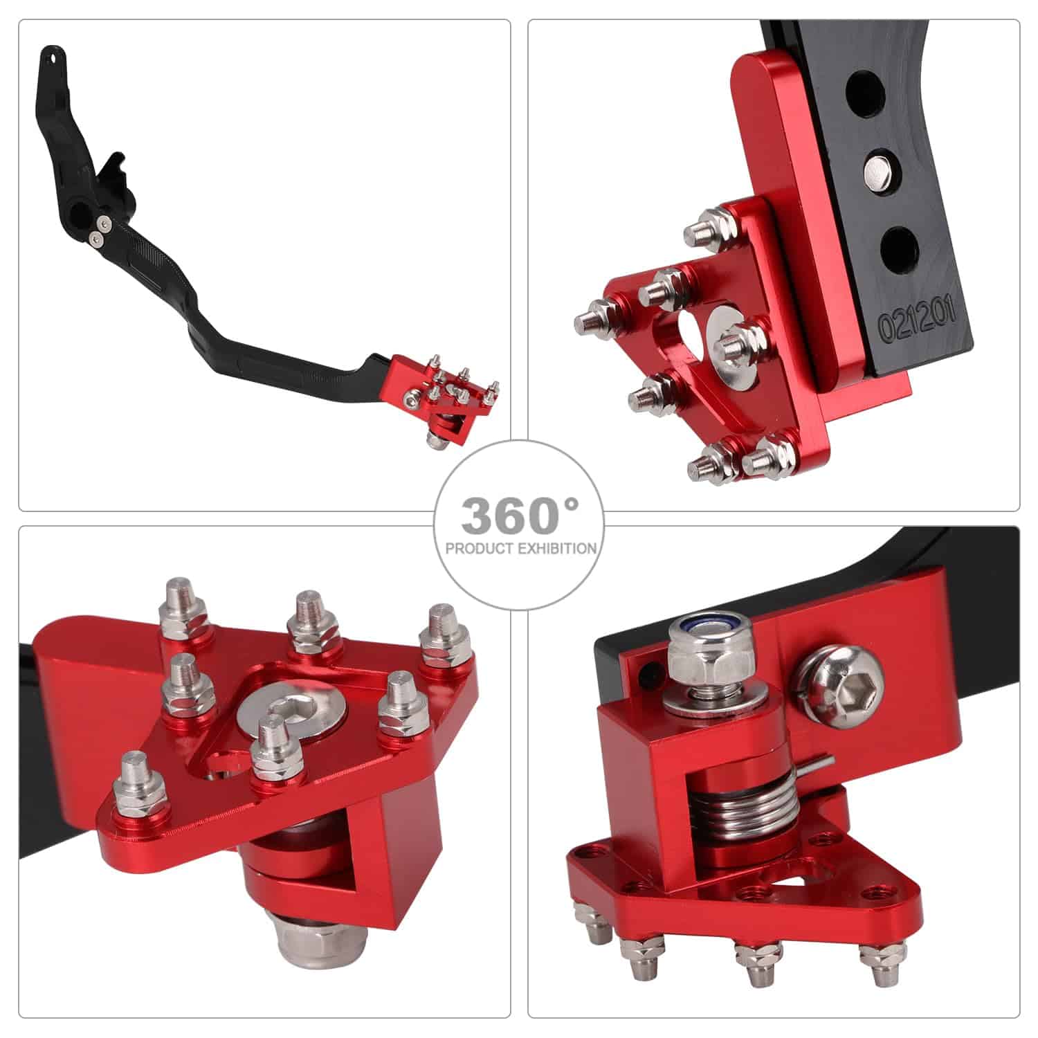Características: 100% Nuevo, Nunca Montado, Alta Calidad. Procesamiento CNC con tratamiento de textura 3D, tratamiento de oxidación en la superficie. El cabezal de freno es ajustable hacia adelante y hacia atrás, el cabezal de freno se puede plegar y el vehículo puede rebotar al caer. El cabezal de freno se puede combinar en varios colores. El material de aleación de aluminio forjado 6061 es más ligero que el original. Se instala un separador de cobre en el agujero de montaje, lo que hace que la rotación sea más suave. Fácil de instalar. Especificación: Color: Como en las imágenes. Material: Aluminio 6061. Compatible con: Para CRF110F 2010-2024. El paquete incluye: Palanca de freno como en la imagen. La instrucción de instalación NO está incluida.