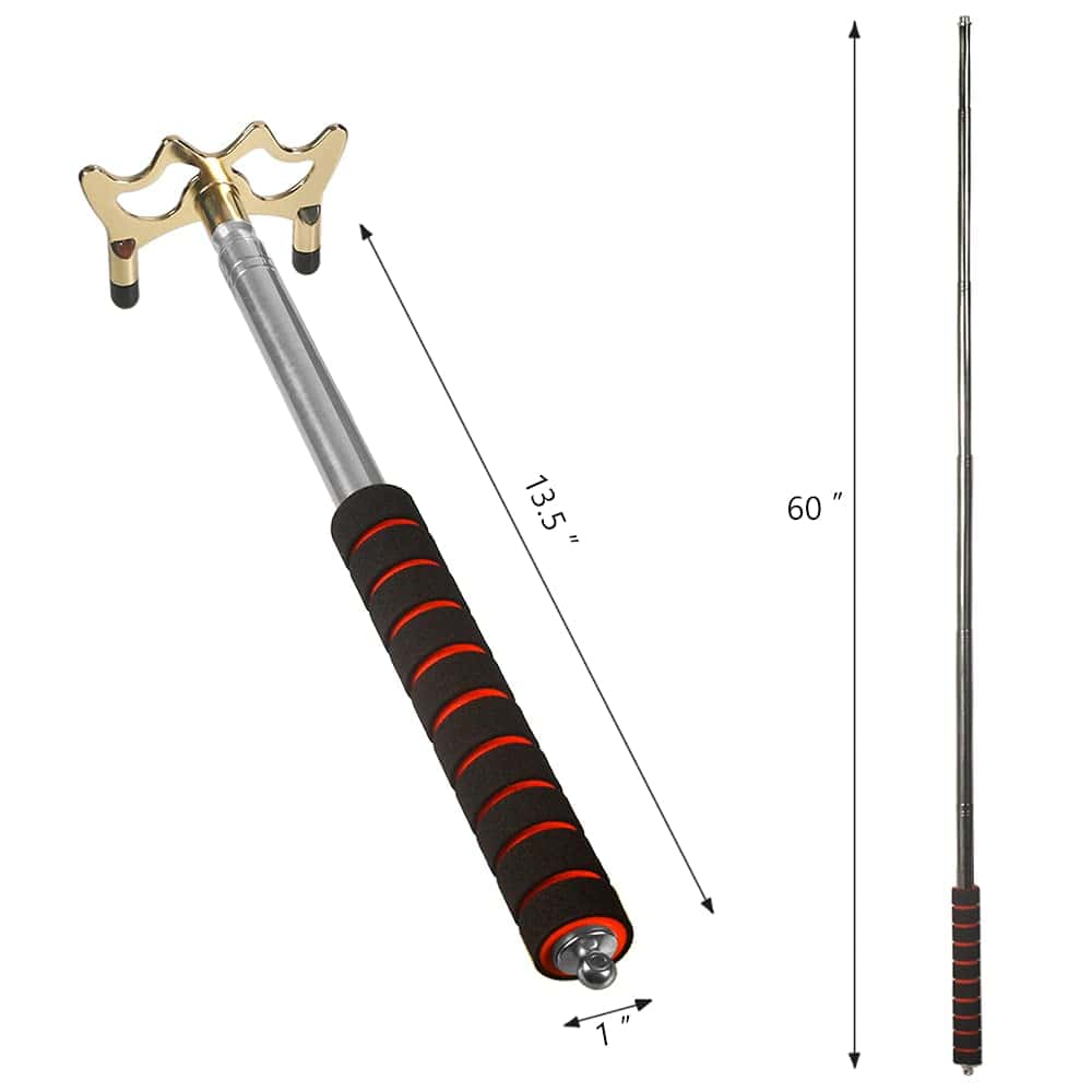1. Palanca de Tacos de Billar retráctil con cabeza de puente baja: la longitud del palo se extiende hasta 59 pulgadas (150 cm) y se retrae a 13.3 pulgadas, portátil y fácil de guardar.