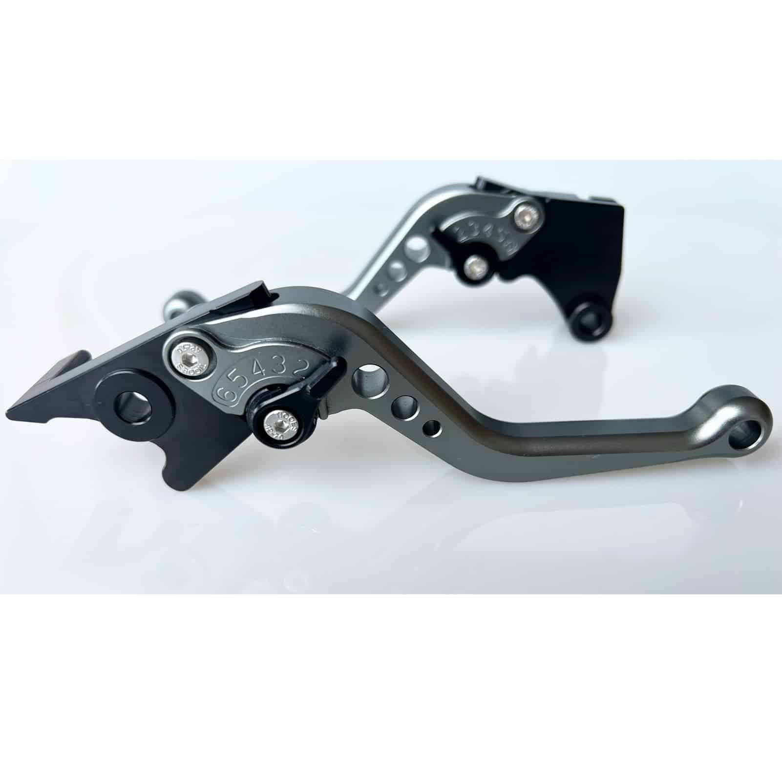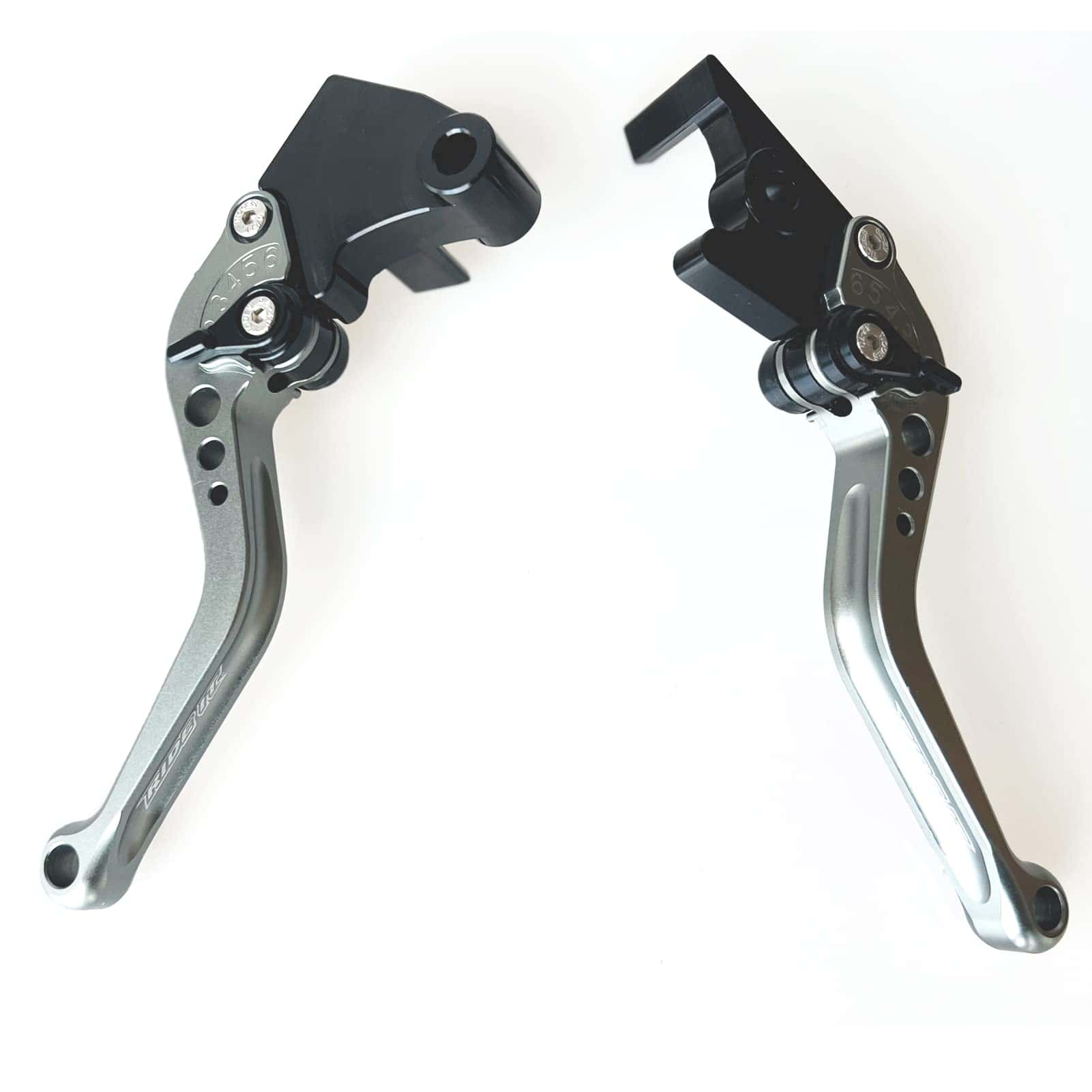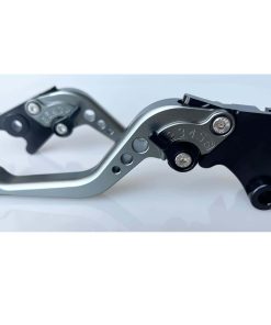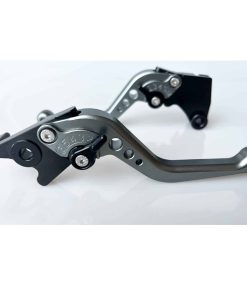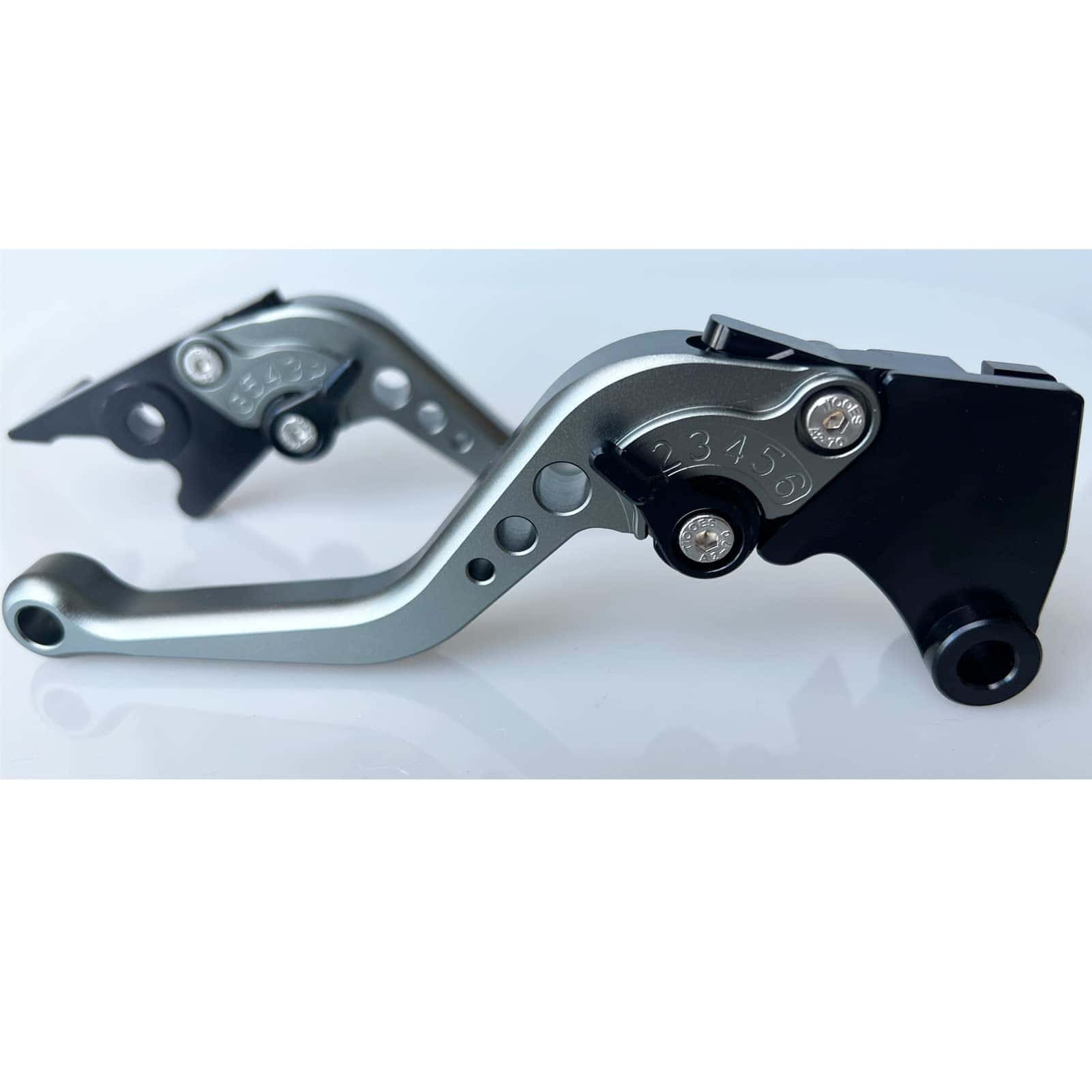 Palancas de freno y embrague de alta calidad fabricadas en aluminio CNC Billet 7075. Cuentan con ajuste de la palanca en 6 posiciones y tornillos de acero inoxidable para mayor durabilidad. El ajuste es perfecto para una instalación sin modificaciones y se recomienda la instalación profesional. Las fotos son únicamente ilustrativas, la forma de la parte de montaje puede variar según los modelos de motocicletas y el año de fabricación.