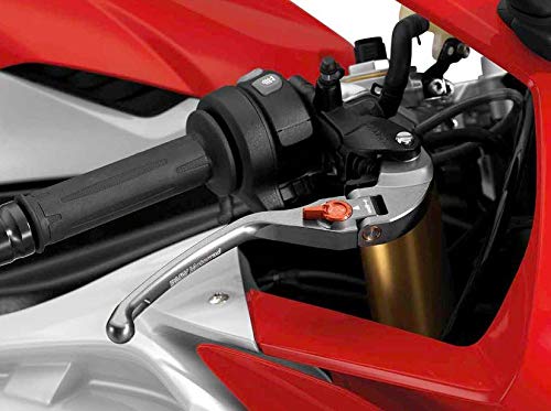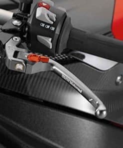 Palanca de aluminio fresada en CNC. Articulada para levantar en lugar de doblarse o romperse. Si la motocicleta se cae, la palanca puede devolverse a su posición original. Contorno ergonómico de la palanca curvada. La distancia entre la palanca del manillar y el agarre del manillar es ajustable a cualquiera de varios ajustes: mecanismo de ajuste ergonómico nuevo con pequeña palanca (en lugar de perilla moleteada). Compatible con 2015-2018 BMW S1000RR/S1000R/HP4/HP